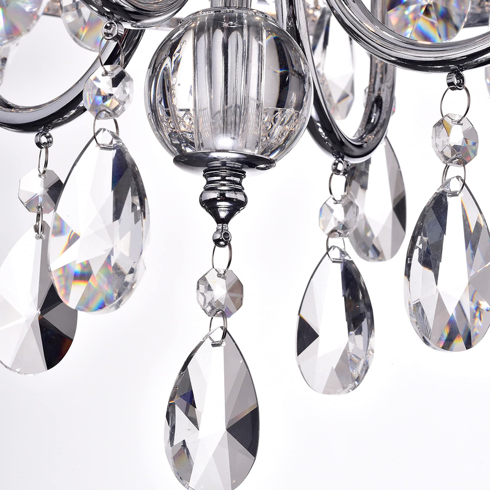 - GLAM DESIGN: This luxurious modern chandelier features an intricate crystal encrusted drum shade, three rows of high-quality cascading hanging glass crystals and a sturdy chrome finish.