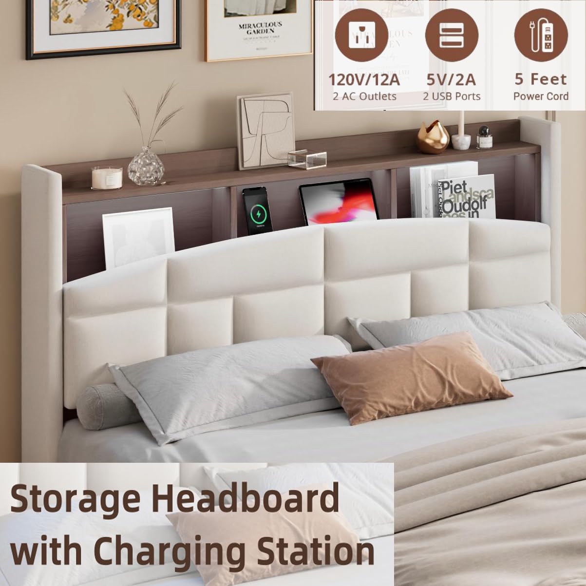 - The platform bed with storage headboard is well packaged in 2 box and comes with detailed instruction, assembly tools, and numbered parts and you just need to match those numbers in order to assemble.