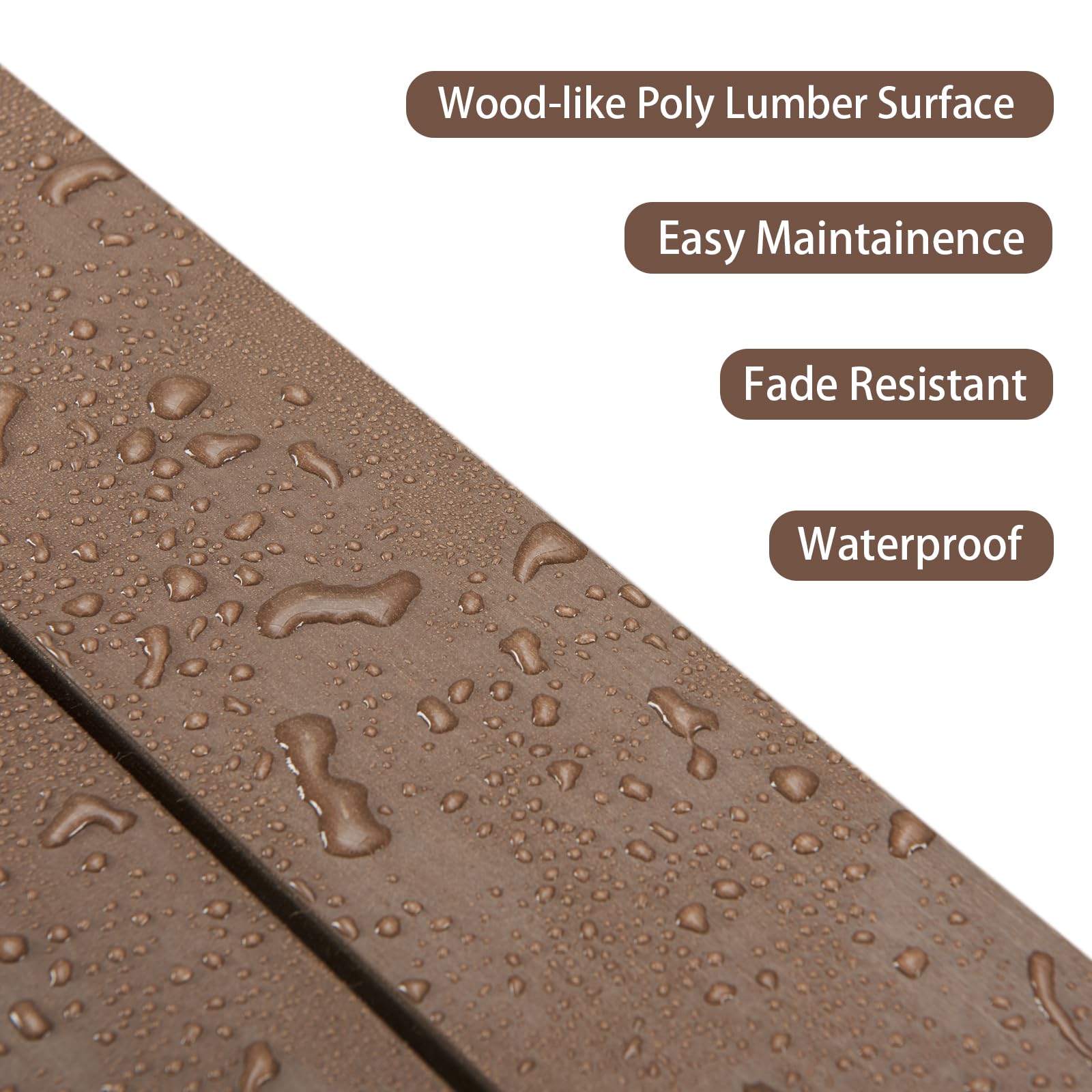 - Upgrade Poly Lumber. We upgrade the poly lumber material, making it more durable and fade resistant than before. While with speacially treated surface, the touch of this bench will let you feel as if you are touching the real wood.
