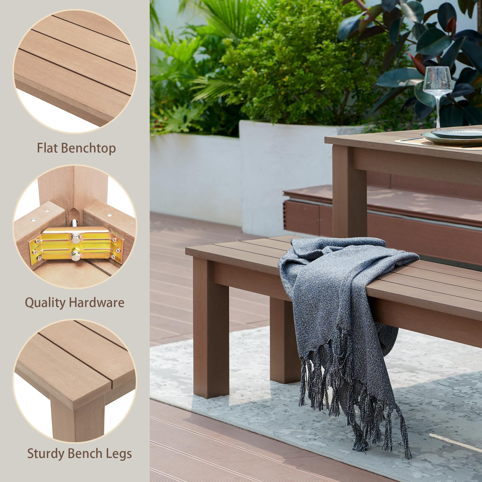Outdoor Bench, 2-Person Dining Bench, Backless Poly Lumber Bench