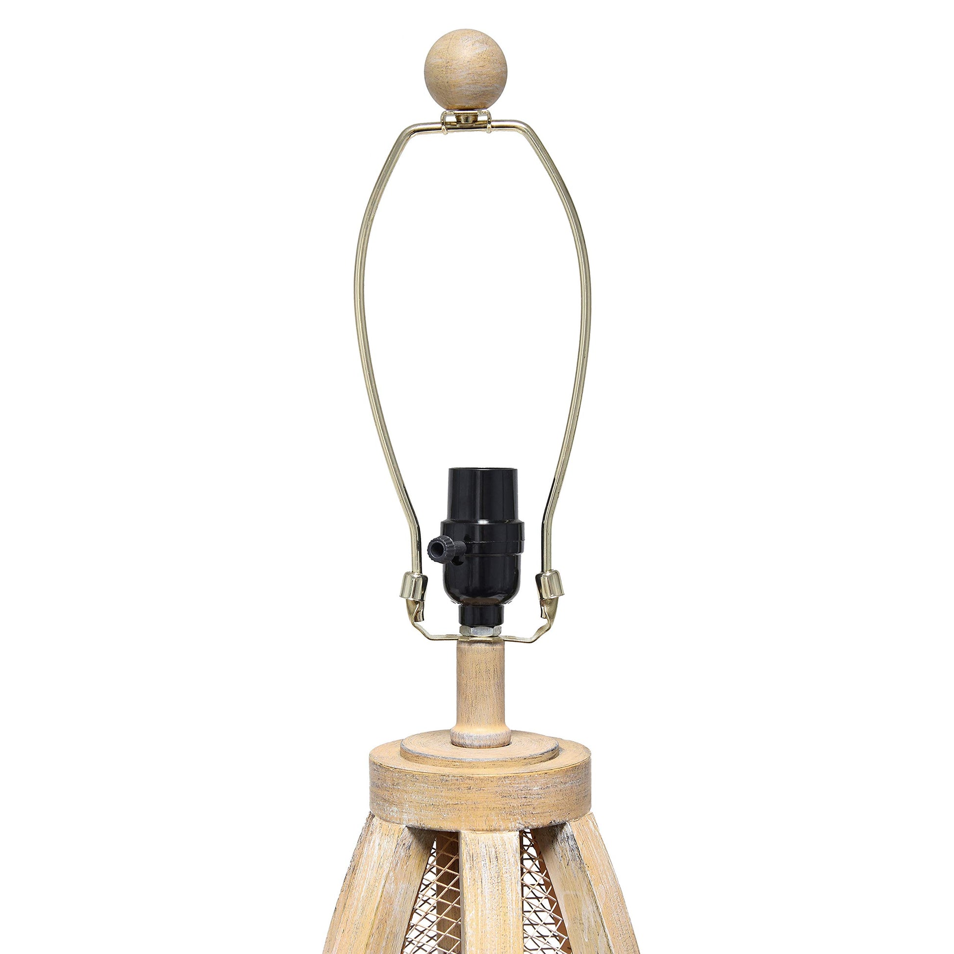 Elegant Designs LT3309-NWD Vintage Farmhouse Wood and Netted 2 Light Table Lamp, Natural Wood