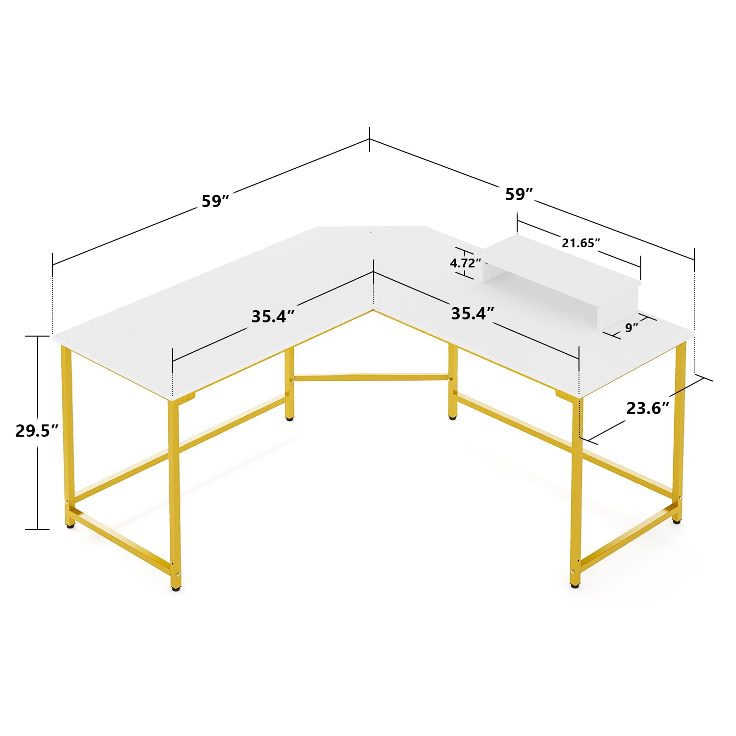 - Large L-Shaped Computer Desk (59+59) L x 23.6W x 29.5H inch, both sides of this space-saving study desk are the same length, providing large working space.