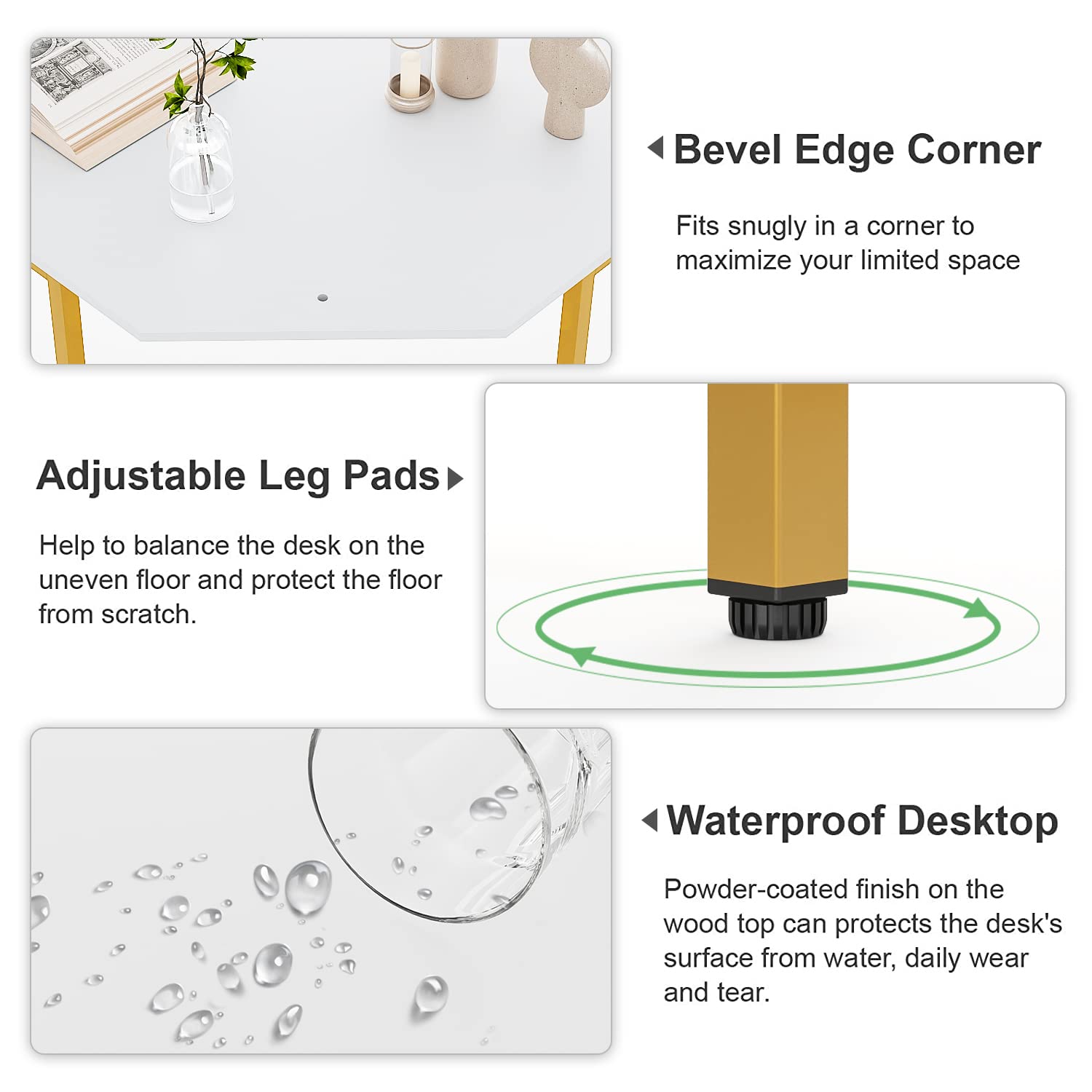 - L-Shaped Corner Design L Shape design fits snugly in a corner to maximize your limited space. The back corner is cut off to allow cables to go where they need to, which allows you to define your workspace.