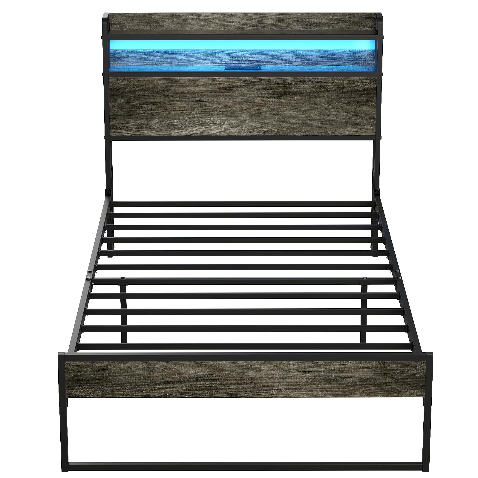 Twin Bed Frames with Charging Station and LED Lights, Metal Bed Frame