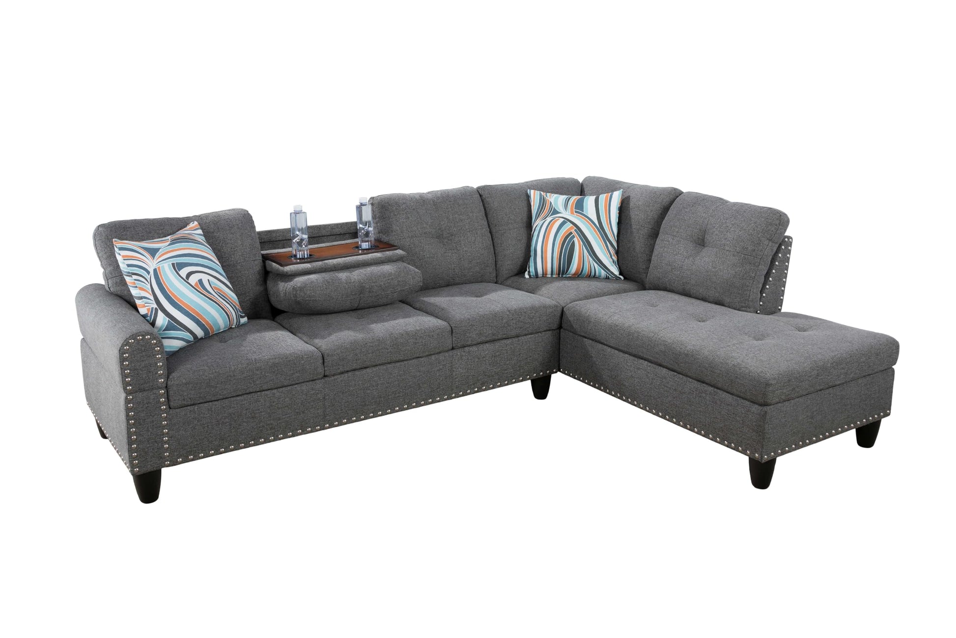 Linen Upholstered L-Shape Sectional Sofa with Storage Ottoman & Chaise
