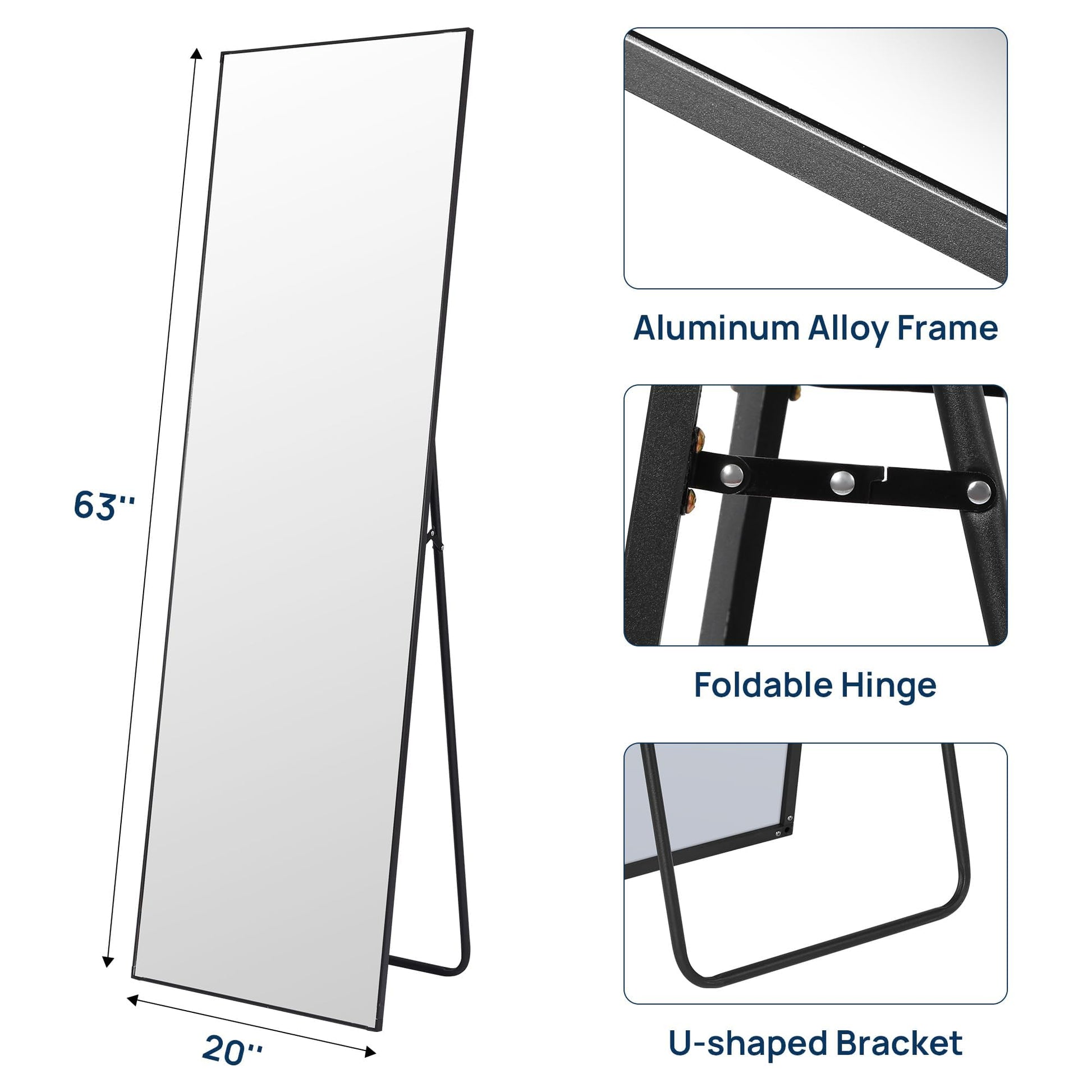63"x20" Full Length Mirror with Stand, Large Body Mirror Hanging or Leaning Against Wall