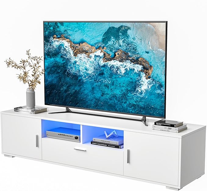 Led TV Stand for Living Room 75 inch TV, Modern TV Media Console Entertainment