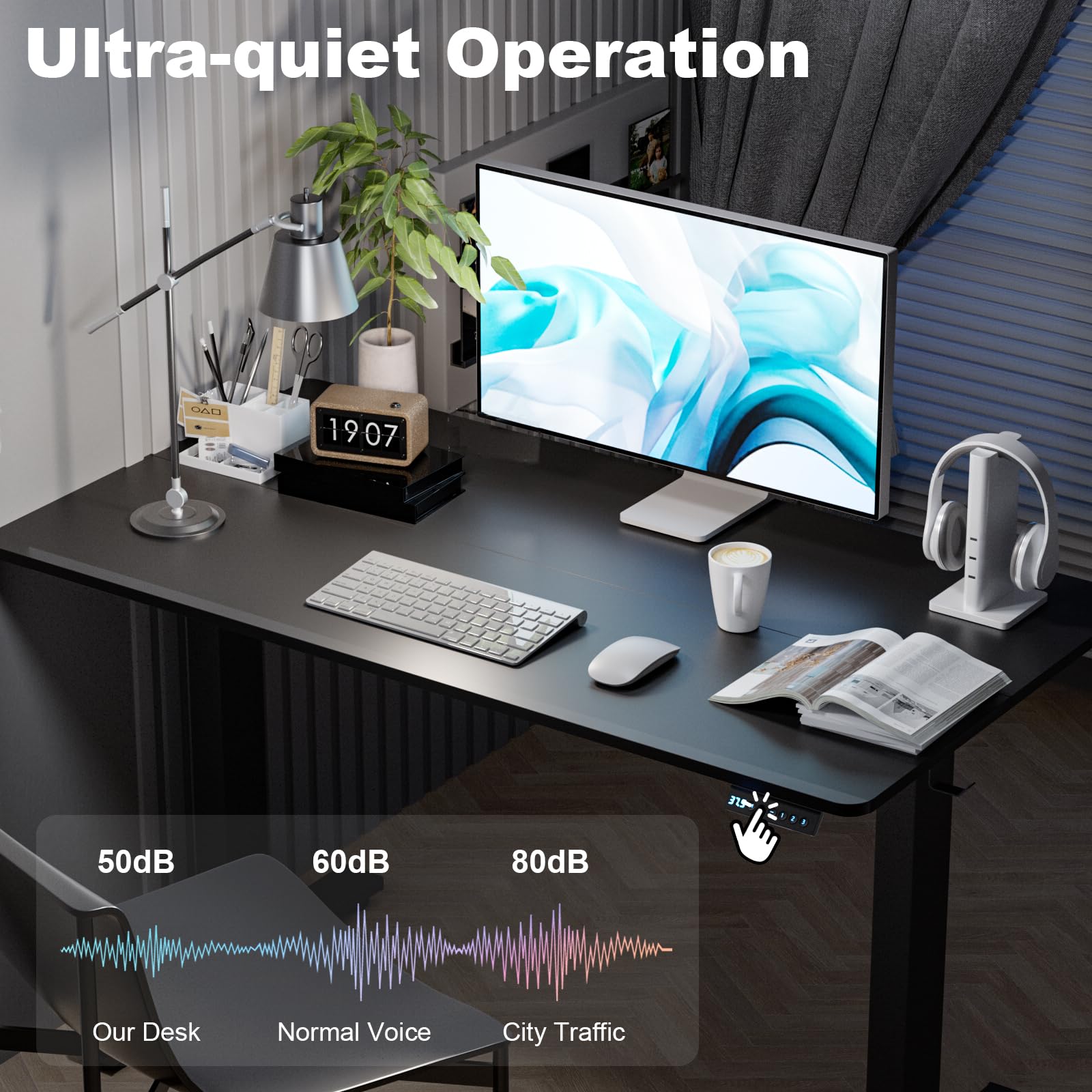 - ExaDesk electric adjustable height standing desks adopt the top-level-tech motor drive system, which helps you preset cozy sitting and standing heights easily. One click smoothly switches to your favorite sit-stand desk height. Desk Height Range: 27.5" to 45.7", Low Noise:<48 db