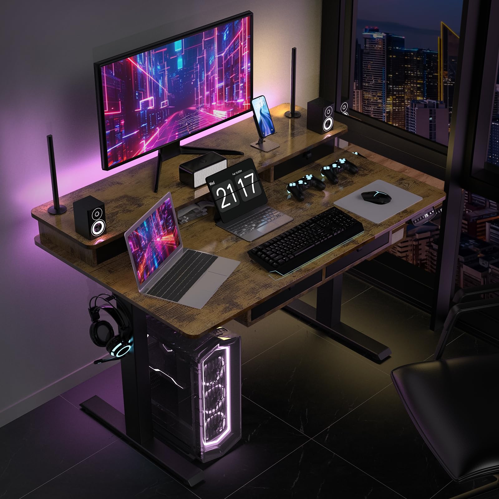 - HEIGHT ADJUSTABLE: Electric lift system supports desktop lift range 27~46 Inches, Keypad Controller provides 3 memory Preset buttons. DC motor can hold up to 176 lbs
