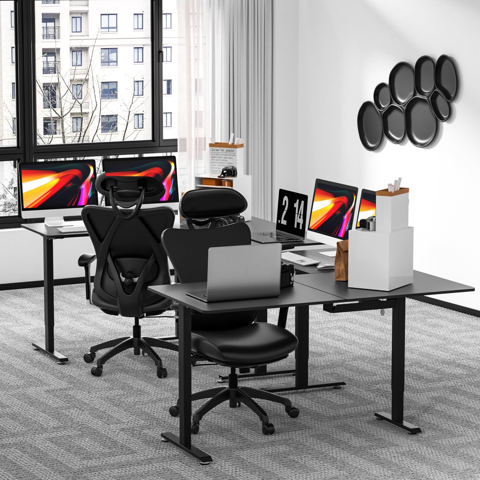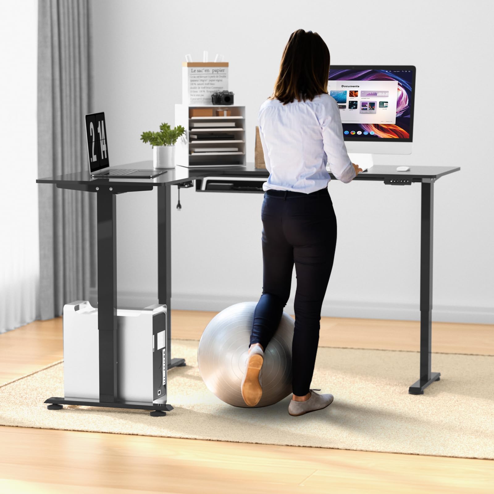 - LARGE L SHAPED STANDING DESK: ExaDesk 63*55 inches electric L-shaped standing desks can easily hold 2, 3 or 4 computer monitors. Its 90 ° L shape corner desktop design makes the space more efficient and modern. and support up to 180 lbs with maximum stability