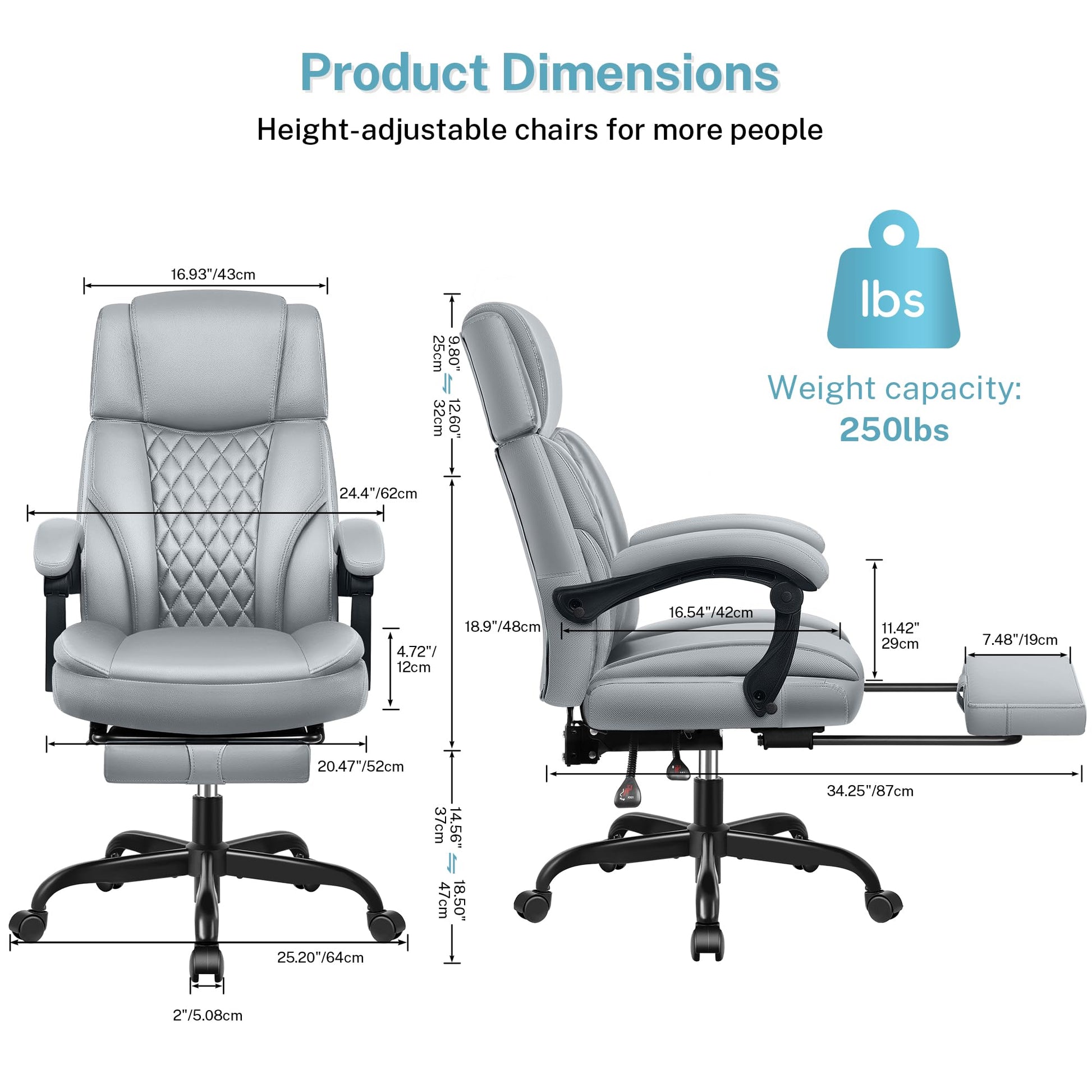 - Multifunctional and Easy to Install: To meet your daily needs, the backrest of this high back office chair can be adjusted and locked in the range of 90-135°. All parts, hardware, tools, and instructions are included in the package. We also provide installation videos, so you can easily complete the assembly in 20-25 minutes. If you have any questions or issues, please feel free to contact our customer support team