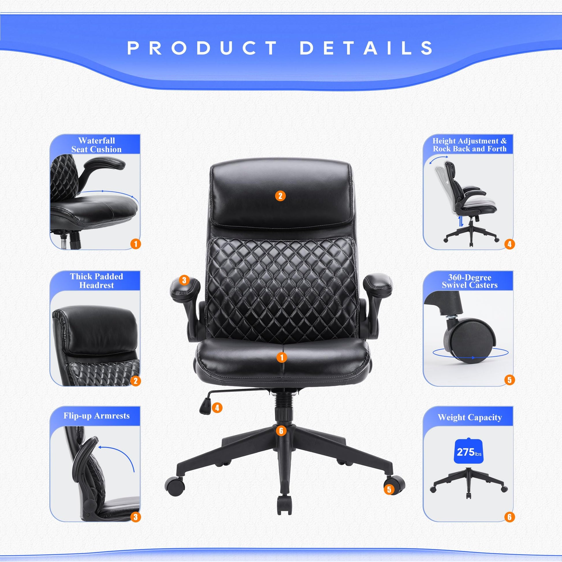 Executive Office Chair, Ergonomic Computer Desk Chair with Padded Flip-up Arm