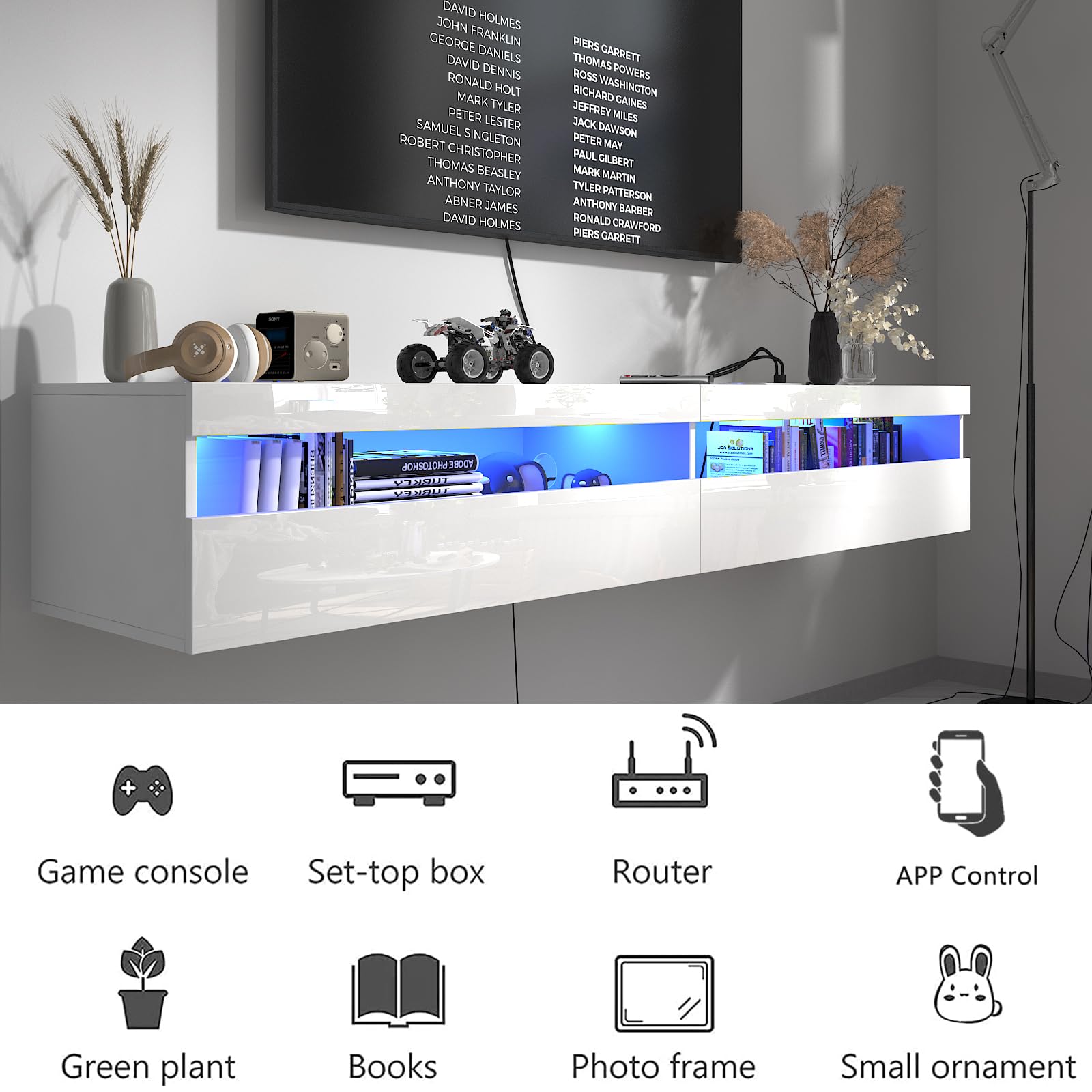 - The floating TV shelf provides Millions of colors and features 29 scene modes, they are separately flash, storage, fade, and smooth, aiming to create a better gaming or party atmosphere and to match your mood or activity.