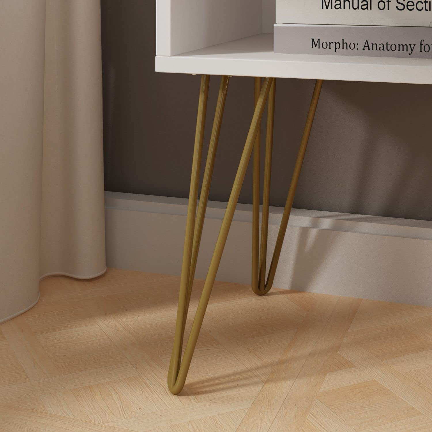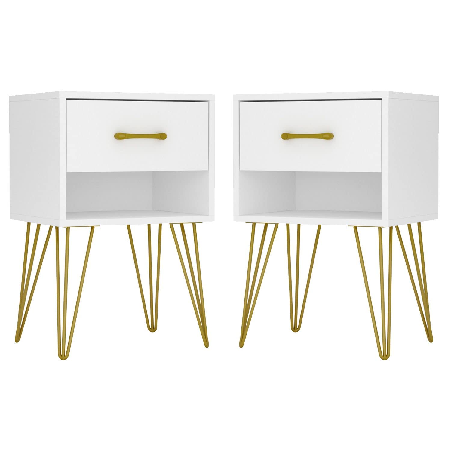 - Industrial & Chic The smooth veneer surface and gold metal legs made this industrial nightstand. The color combination brings a modern feel to your bedroom, which also perfectly suits for most of your living space.