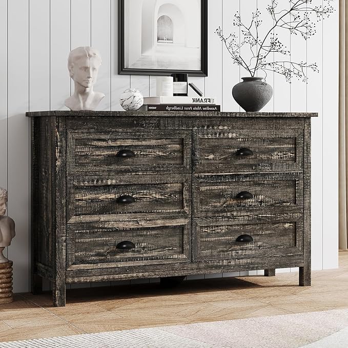 - Large Capacity Dresser: This antique dresser is 47.2 inches wide x 15.7 inches deep x 31.5 inches high with seven large drawers, each 5.5 inches deep. It's ideal for organizing clothing, documents, jewelry and personal items, while the wide tabletop provides space for lamps, aromatherapy, picture frames, plants and decorative items. Simplify your living space, maintain order and infuse your room with warmth.