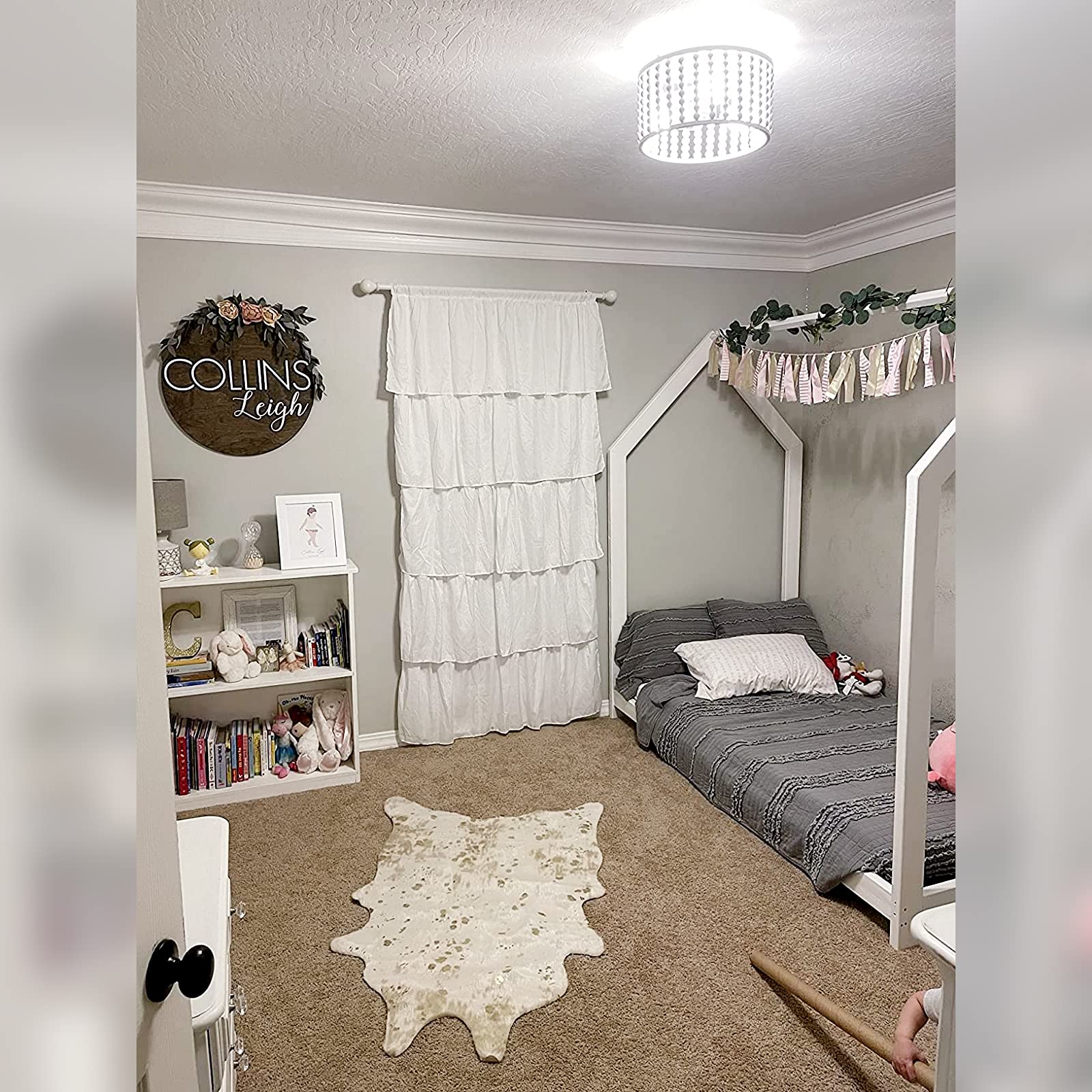 - The kitchen light fixtures ceiling is made of high-grade metal and rubber wood by hand, coated with high temperature baking painting, anti-rust. The three-light beaded flush mount ceiling light is ideal for entryway, hallway, bedroom and stairway, nursery room;