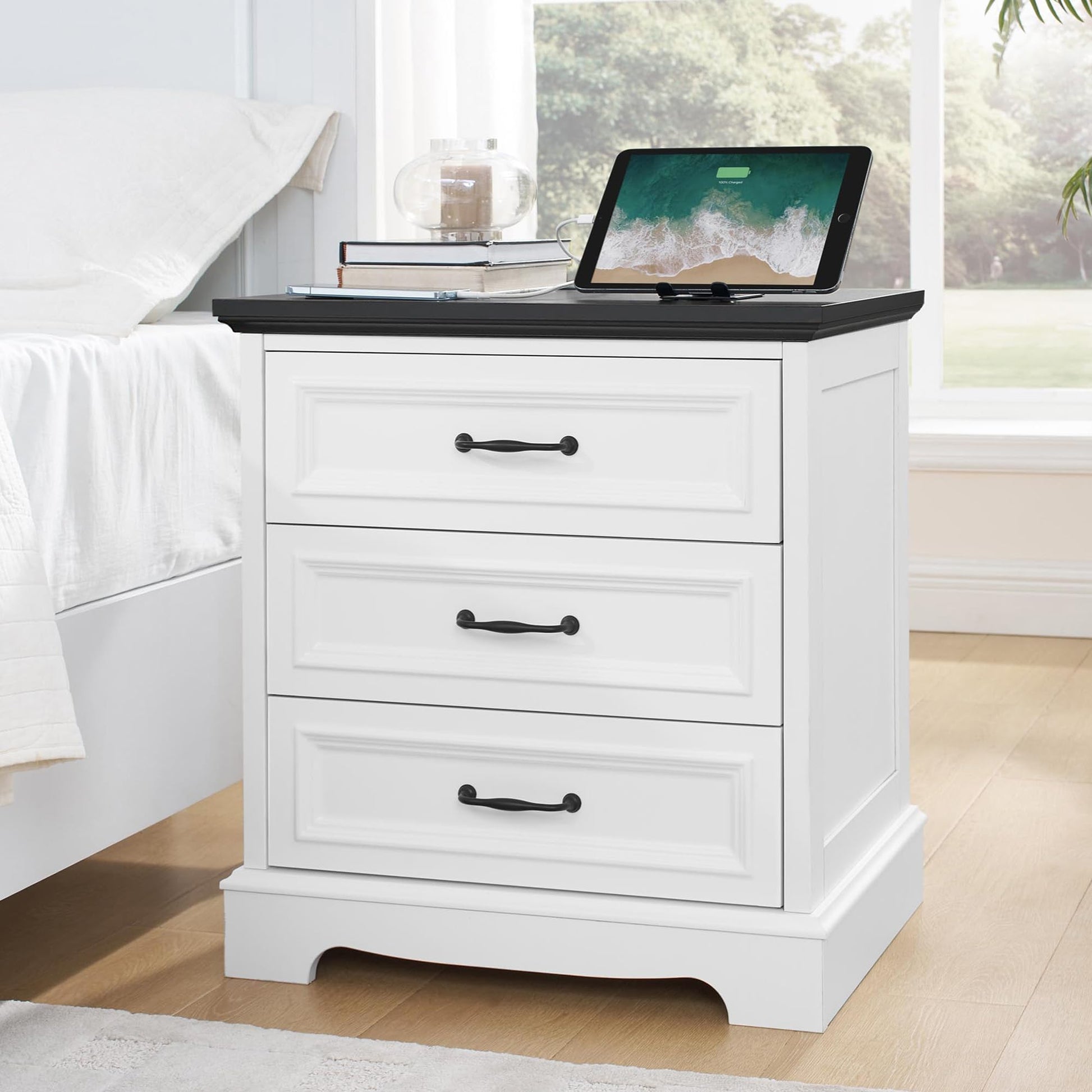 - Nightstand with Charging Station: Farmhouse end table features a modern plug-in design to meet your charging needs, complete with 2 AC outlets, a USB port, and a USB-C port.Easily charge your mobile devices quickly with a USB cable.