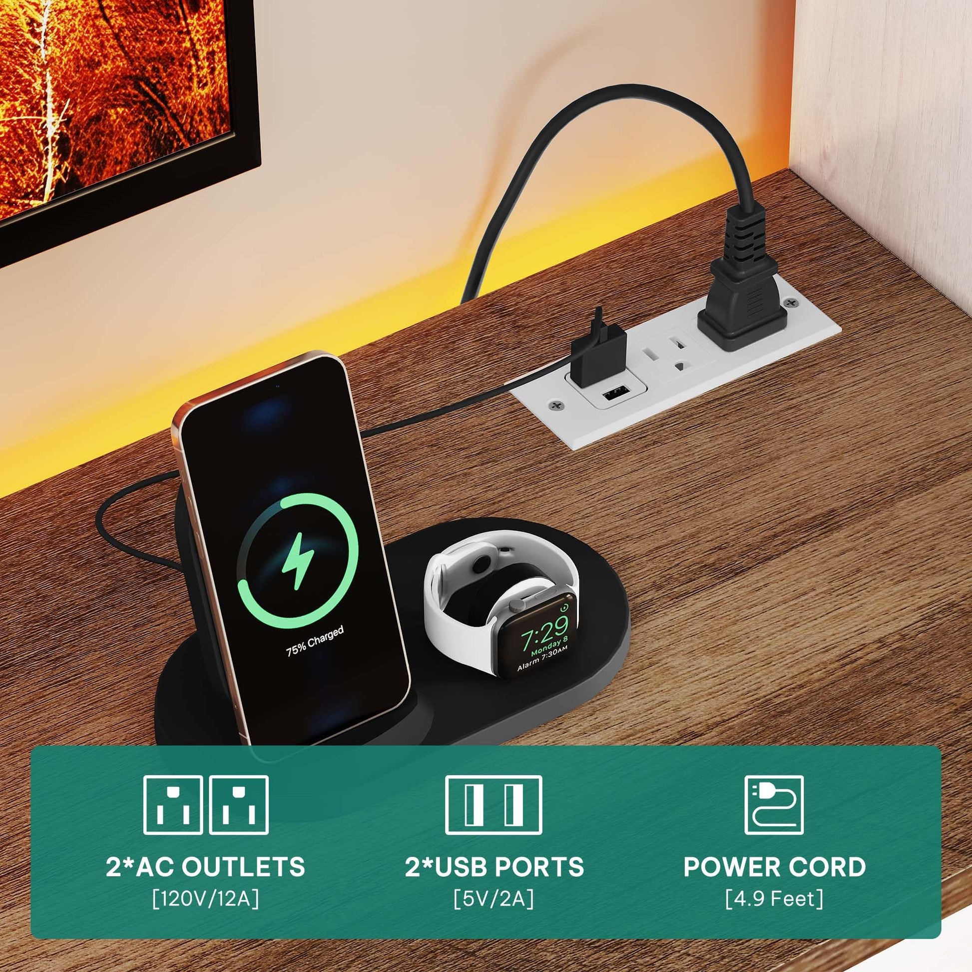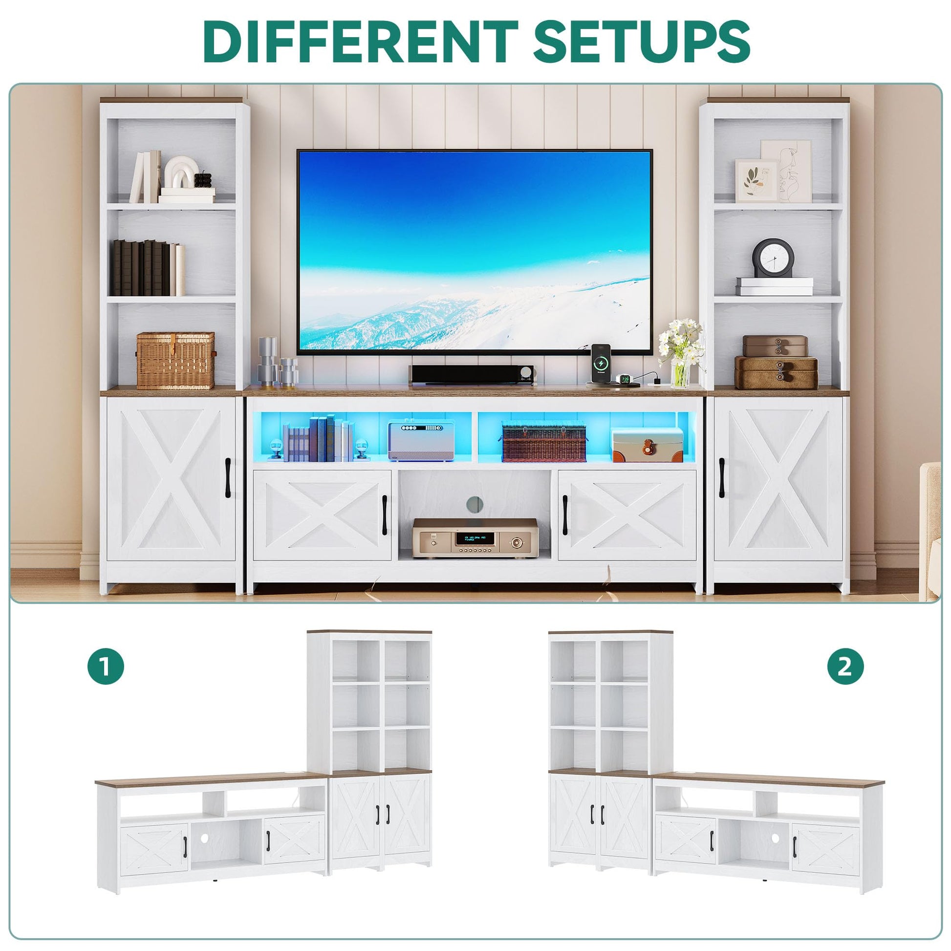 Farmhouse TV Stand for 65" TVs with LED Lights & Storage