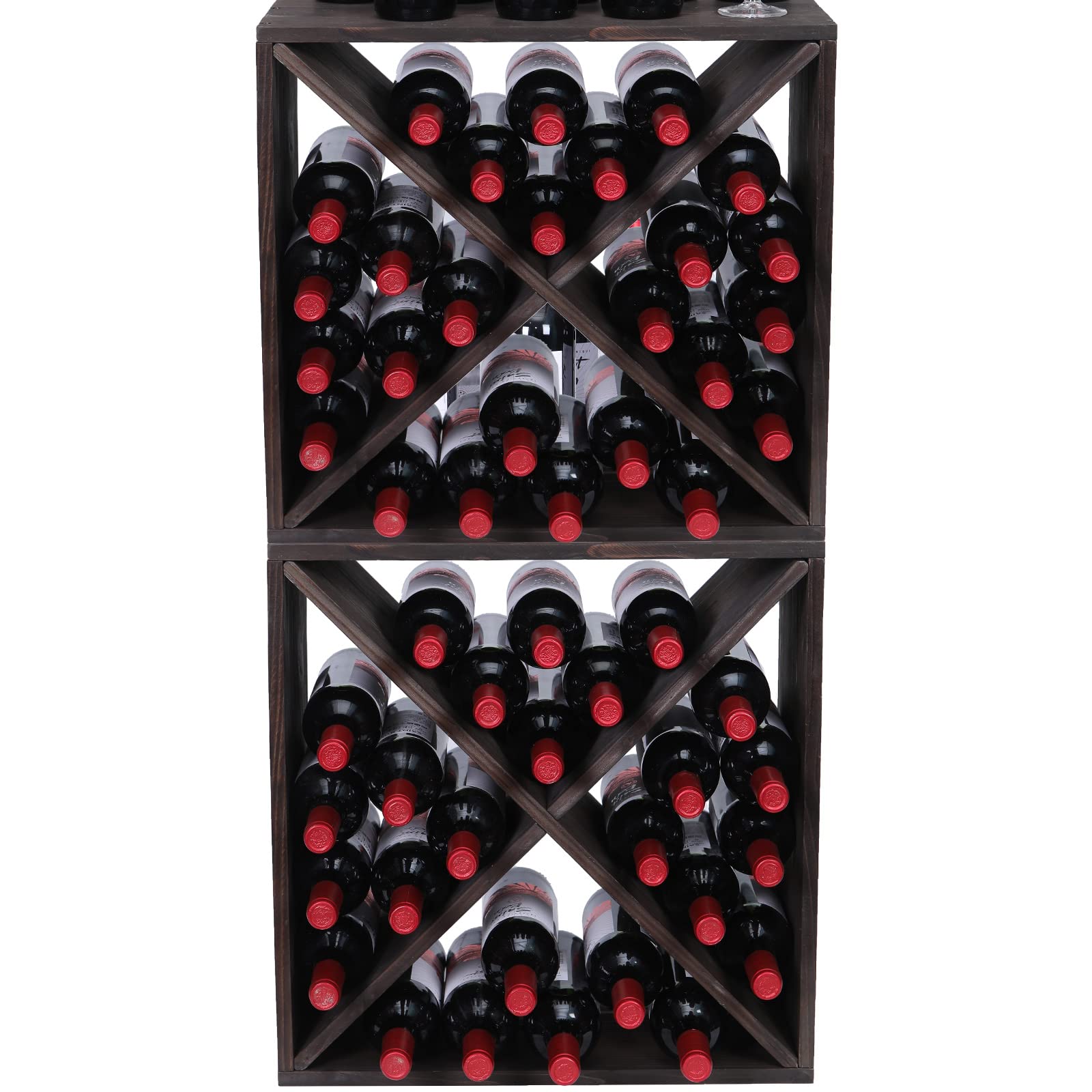 The wooden wine rack can easily store 24 bottles of wine to save cabinet space in the bar area or kitchen, storage room or wine cellar