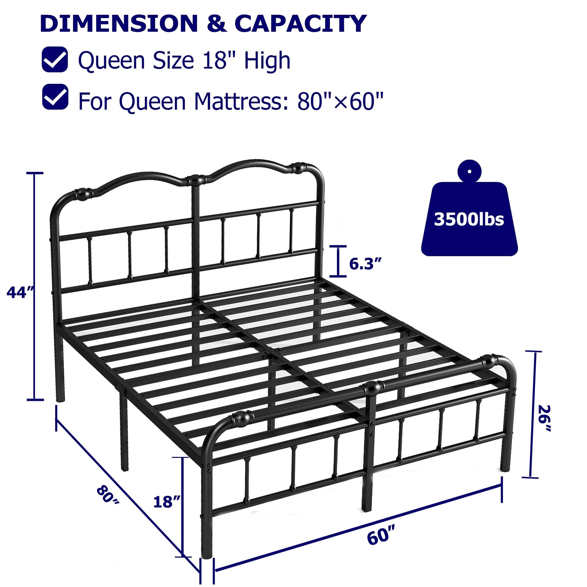 Queen Size Bed Frame with Headboard and Footboard, 18 Inch High, No Box Spring Needed
