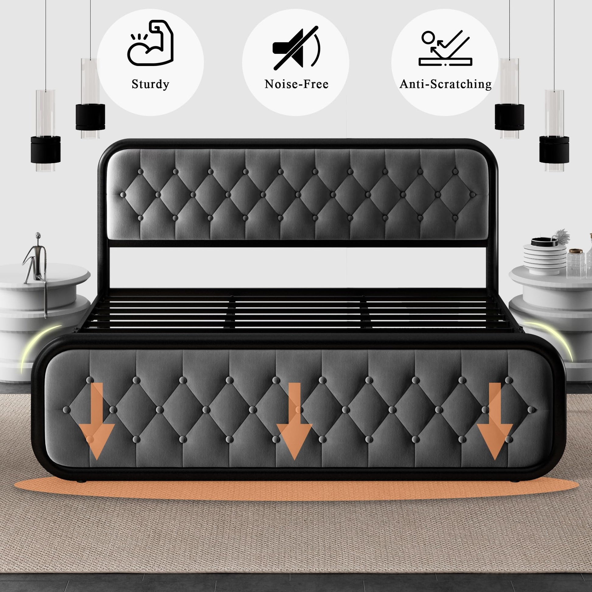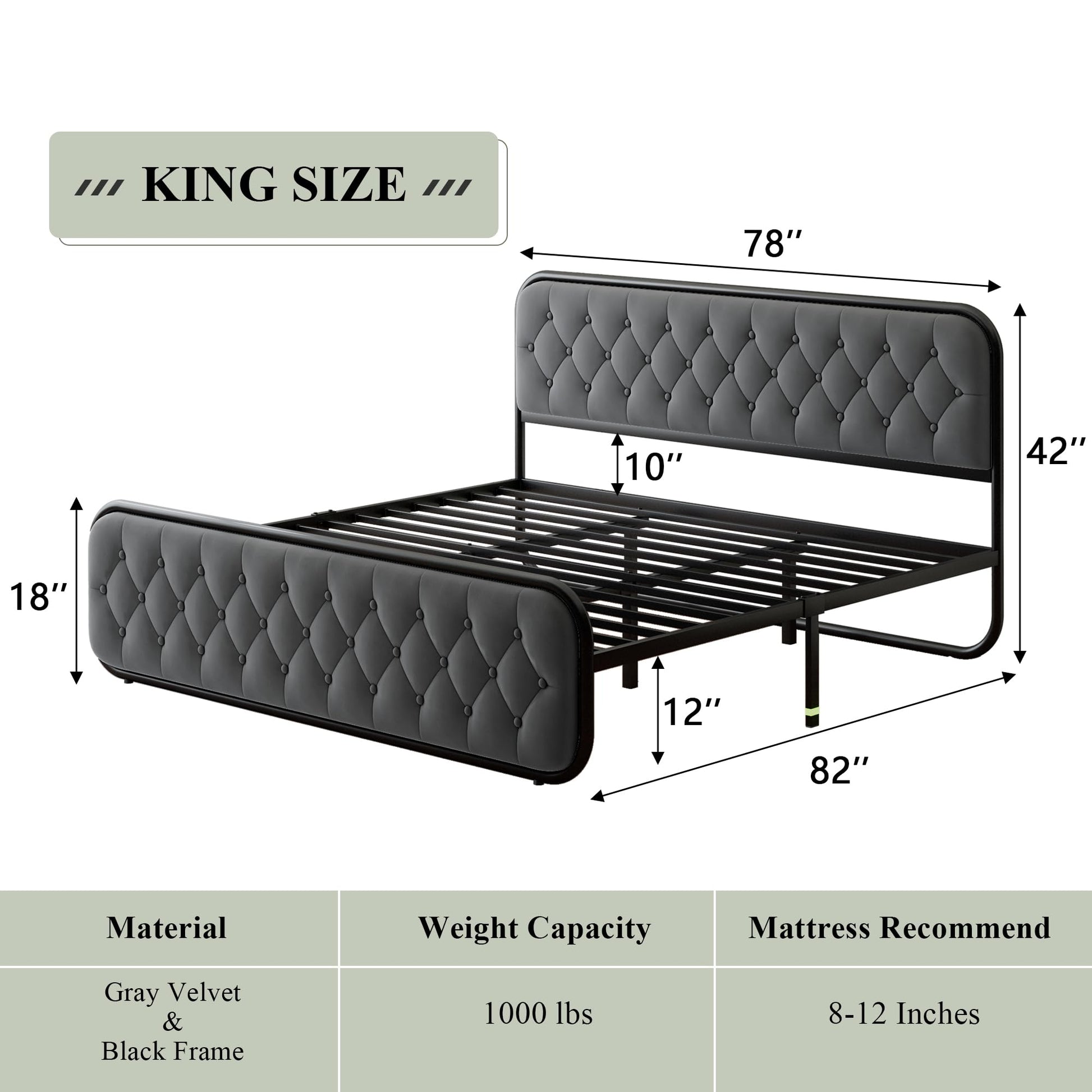 King Size Bed Frame, Heavy Duty Bed Frame with Buton Tufted Headboard, Upholstered