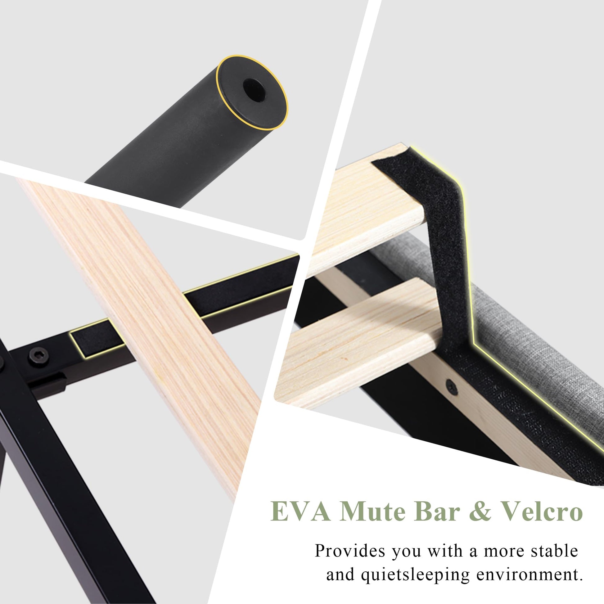 - Noise Free: Evenly spaced velcroed slats, stable leg pads and EVA foam bar. Make sure you and your family have sweet sleeping night and relaxing time