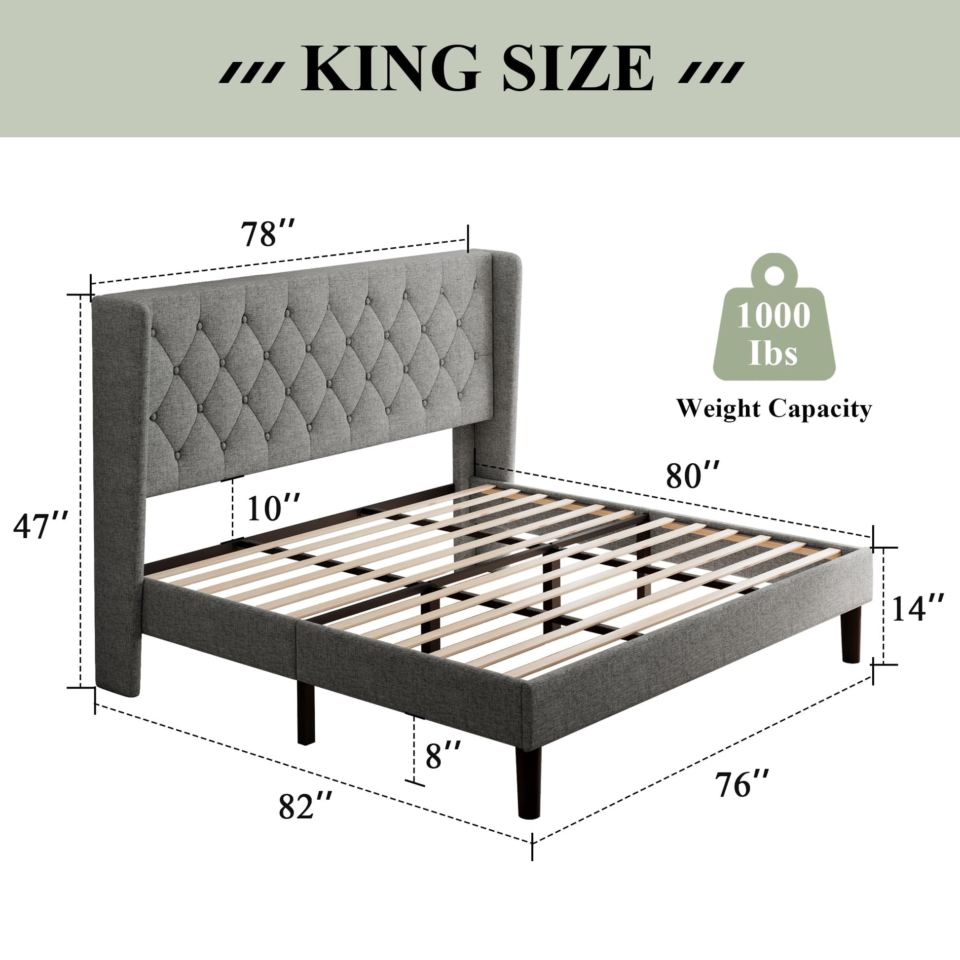 King Size Bed Frame with Wingback, Upholstered Platform Bed