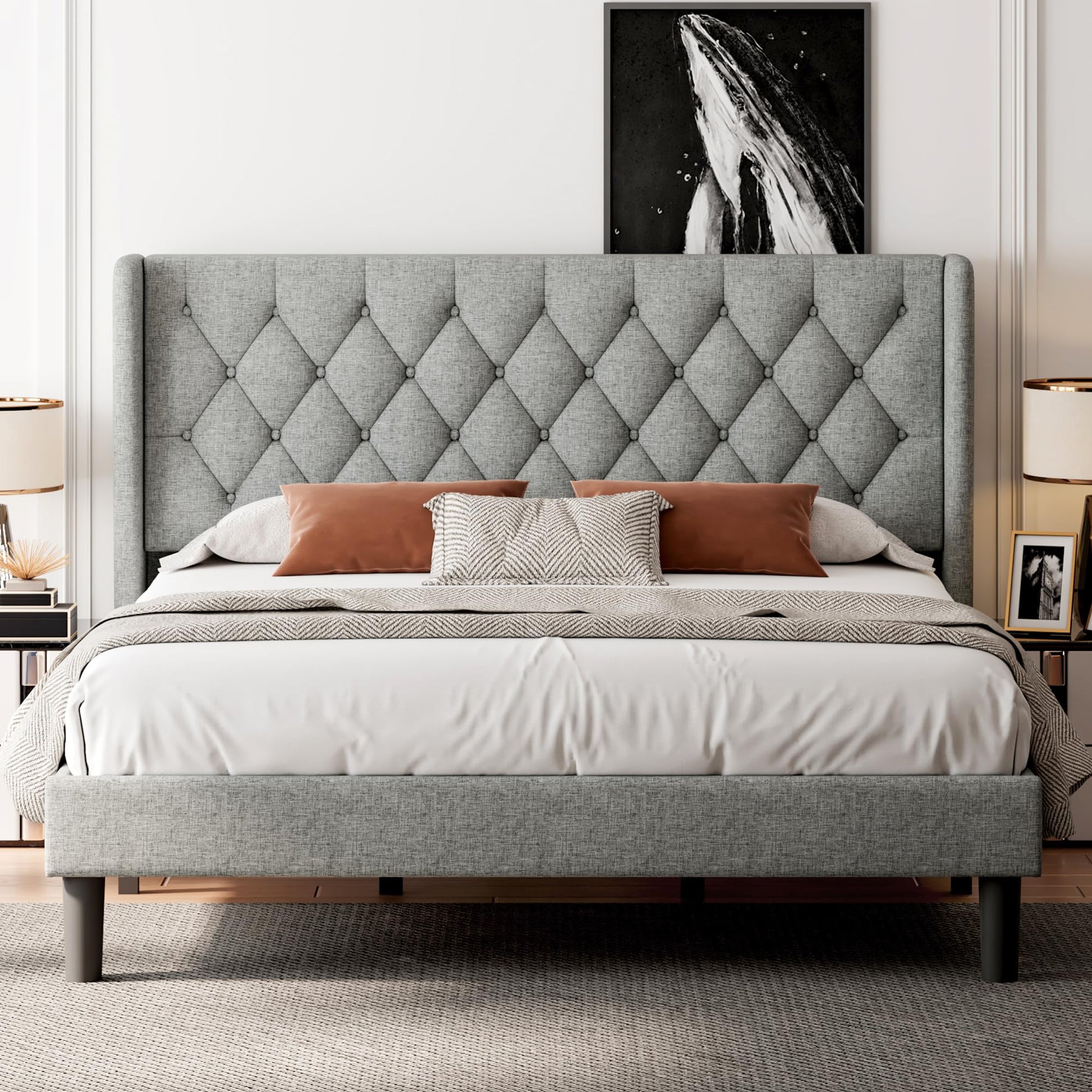 - Elegant Wingback Headboard : This upholstered bed frame combines pretty wingback with classic button tufting. A linen-wrapped bed frame in classic and versatile gray creates a chic look. Easily blends into any style of rooms