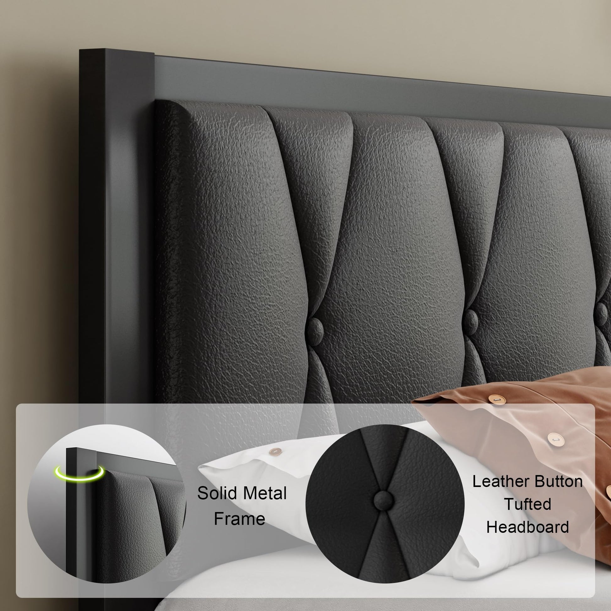 - Stylish & Modern Style: Perfect combination of metal bed frame and geometric faux leather headboard, classic shape of lines and tufted buttons, creating a modern and vintage style, suitable for all kinds of bedrooms