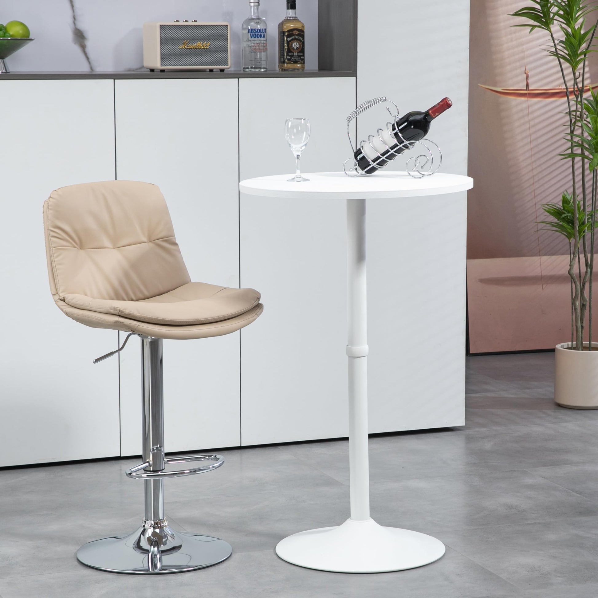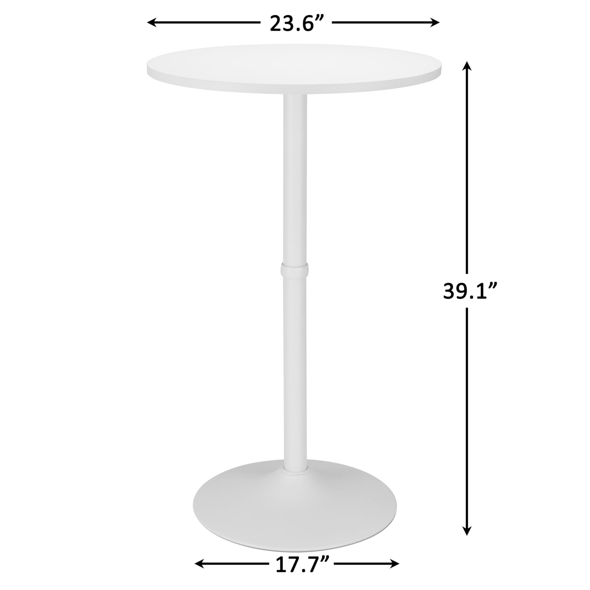 - Not adjustable round top bar table with white legs and base, the height is 39.3 inches. Made of P2 compliant MDF table top and metal stand, The rust-resistant stand features an anti-skid rubber ring at the bottom for added stability.