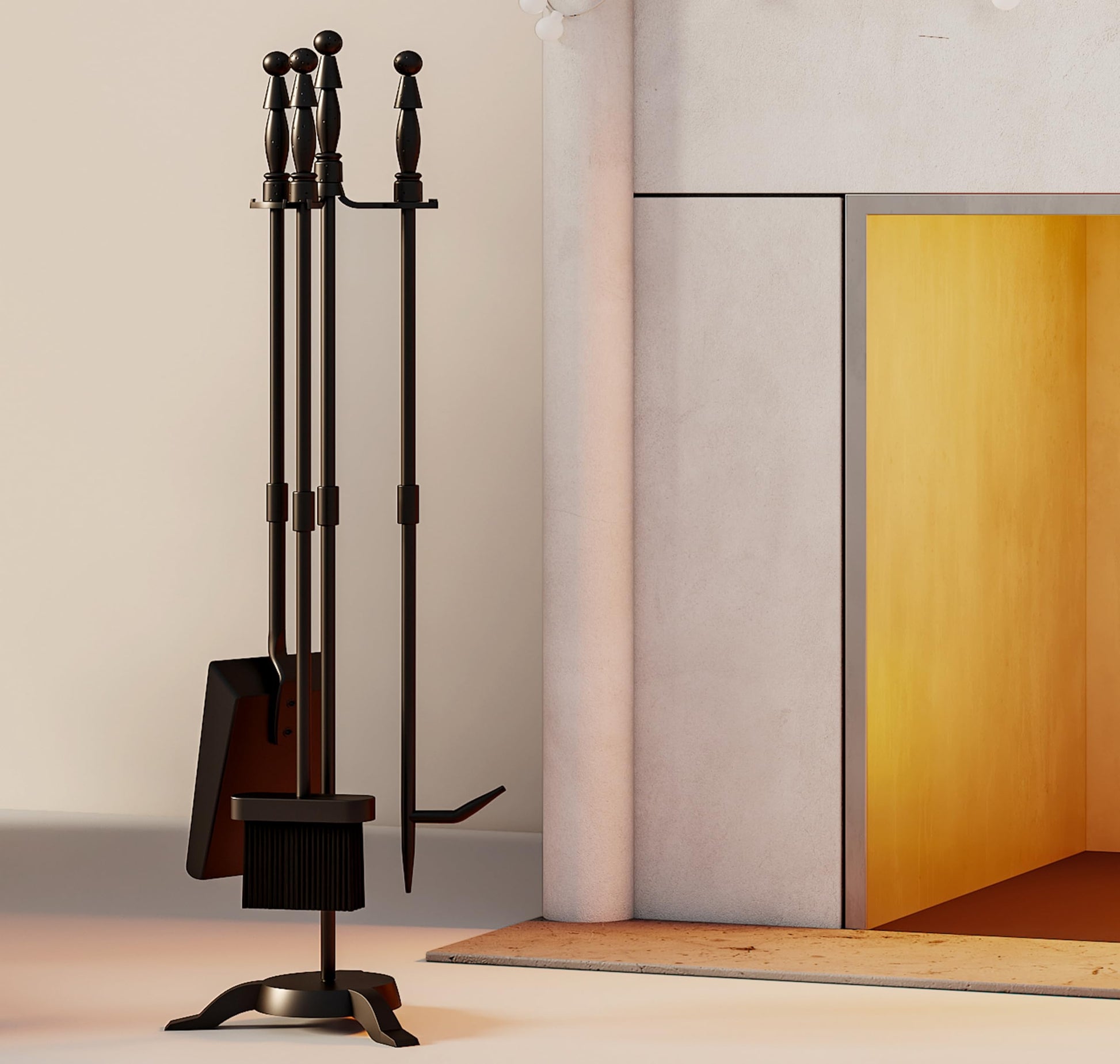 - ERGONOMIC DESIGN: Each of our fireplace tool has its own unique, comfortable and ergonomic handle. Not only easy to grasp but also can reduce the fatigue and pressure on hands and wrists. Use our modern fireplace accessories to improve the design aesthetics and style of your house. They will seamlessly integrate into any environment, the retro design style improves the visual effect and warms your winter with the fireplace.