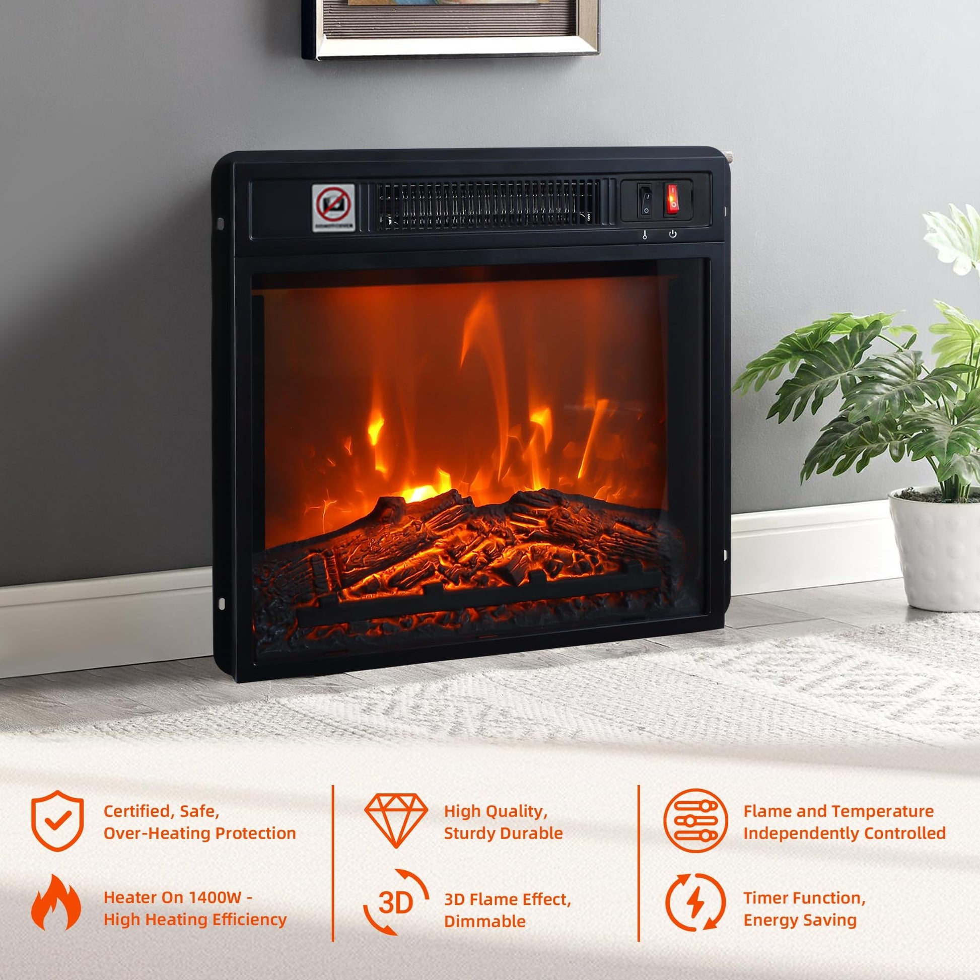 - Electric Fireplace Combine a 58" TV corner cabinet with a 18" electric fireplace,The flame effect of the built-in fireplace is realistic, attractive and modern clearance heater provides warmth while bringing you visual enjoyment.