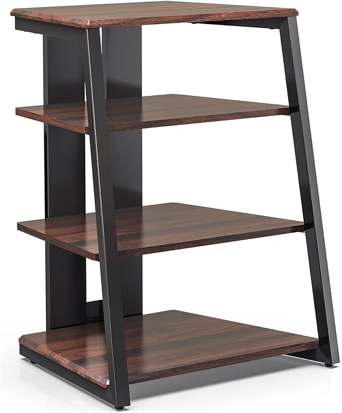 4-Tier AV Media Stand Corner Shelf Stand Wooden Corner Shelves Component Cabinet