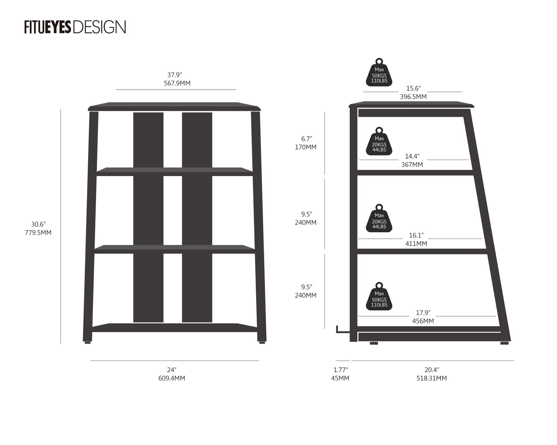 - This media shelf is made of premium 15mm MDF board which has superior load-bearing to grantee long time using and also easy for cleaning and maintain. The sturdy powder-coated steel frame come with adjustable foot pads also enhance the trapezoidal structure media shelf more stable, not only offers a large weight capacity (up to 110 lbs), but also waterproof and rust free.