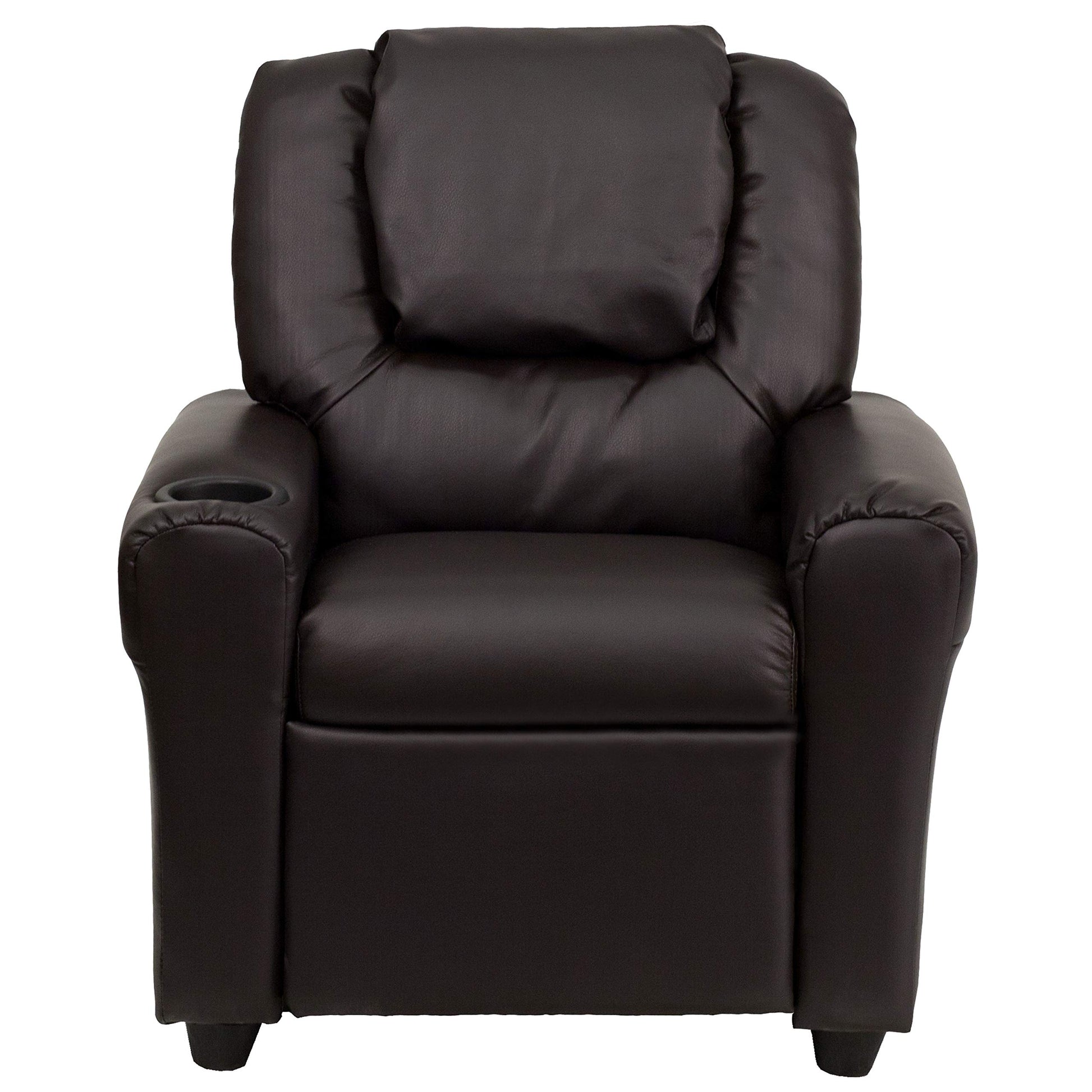 Vana LeatherSoft Kids Recliner with Cup Holder, Headrest, and Safety Recline