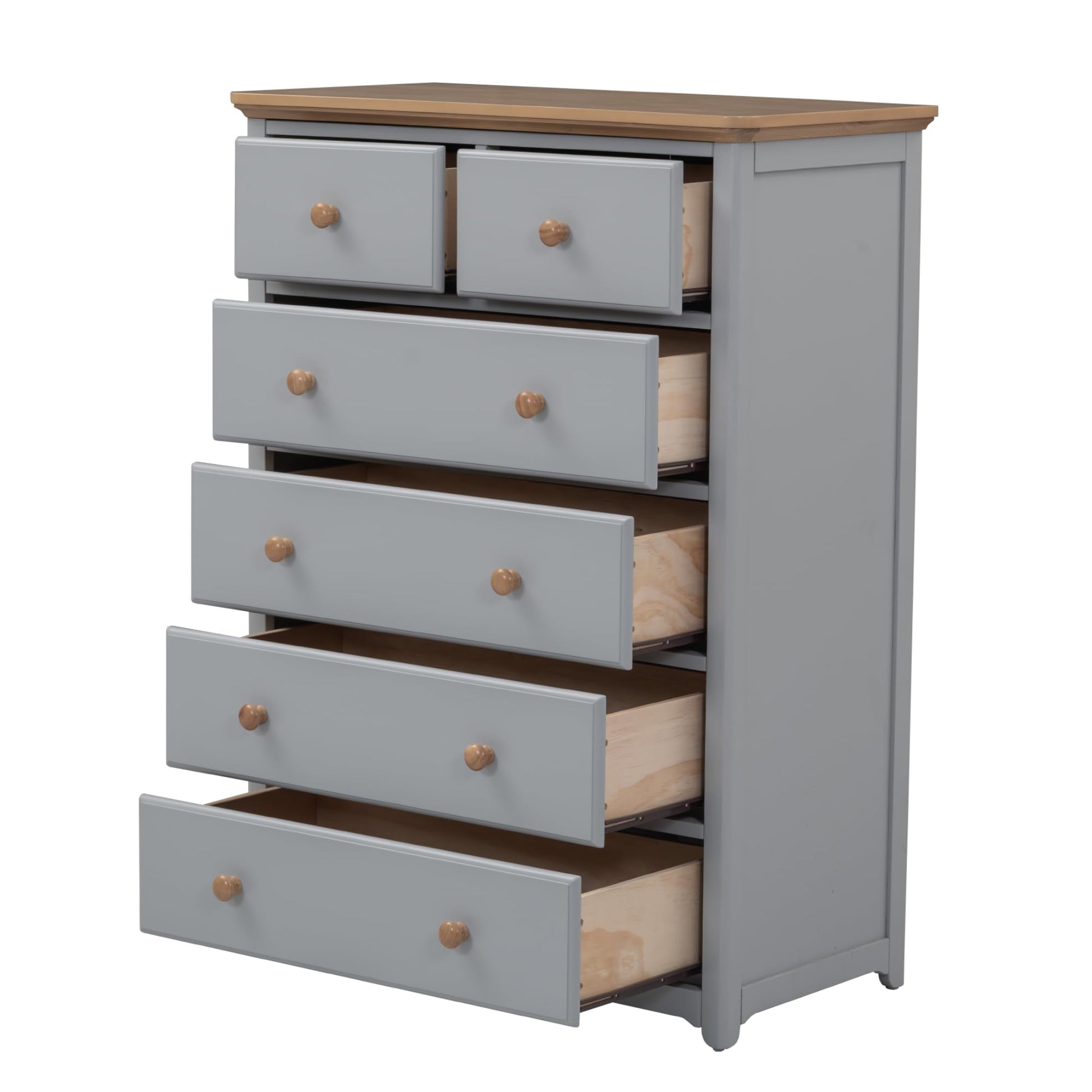 - Chest with Ample Storage The Chest is designed to provide ample storage space while utilizing limited room space effectively. Crafted from high-quality woods like pine, plywood, and MDF, it ensures durability and stability. The thick legs enhance stability and provide reliable support. With six drawers, this chest offers plenty of storage for your daily supplies and miscellaneous items. Add functionality and style to your bedroom with this well-designed chest. Its overall dimension is 35” x 18” x 48''(L x W x H). If you have any questions, our friendly customer service representatives are ready to assist you.