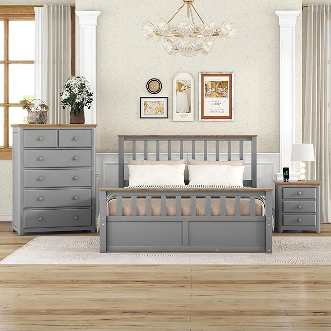 - Complete Bedroom Set Transform your bedroom with this 3 Piece Bedroom Set, which includes a Full size platform bed, Nightstand, and Chest. With its stylish design and relaxed, weathered finish, this set offers a modern rustic aesthetic that suits a variety of room sizes, from spacious bedrooms to cozy apartments.