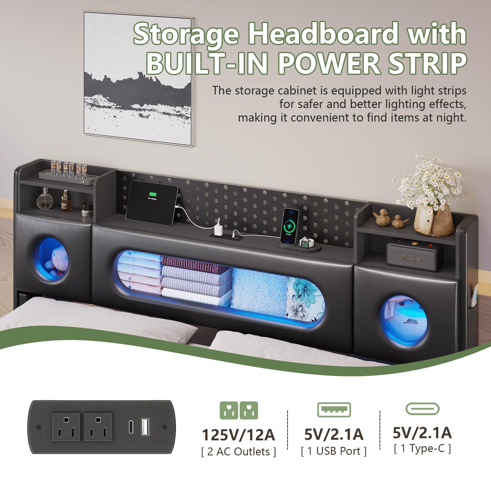 | Headboard Height | Upholstered with integrated features |