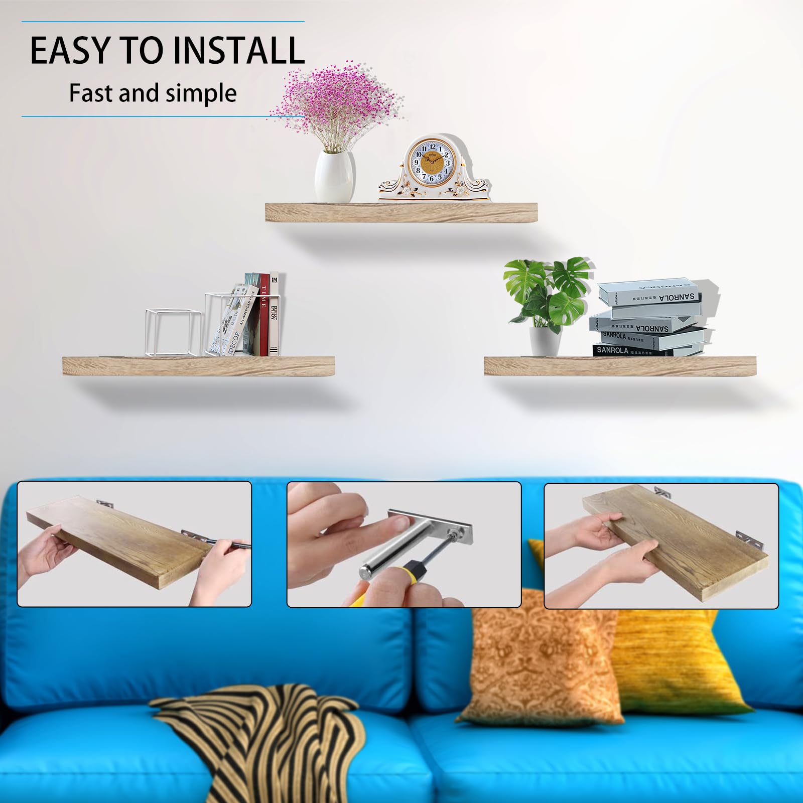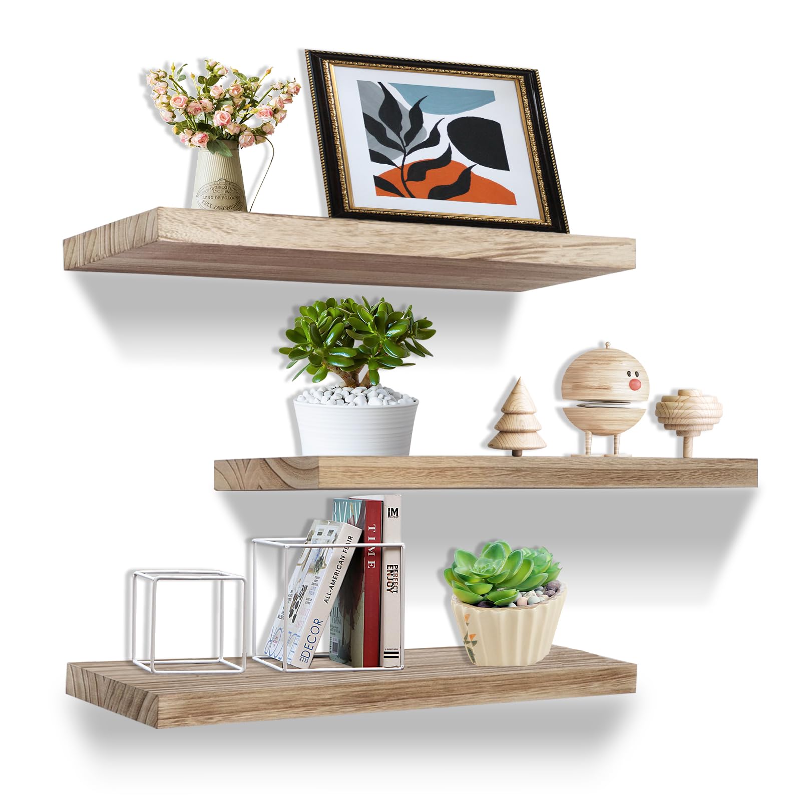 Floating Shelves, Rustic Solid Wood Shelves Set of 3,Floating Shelves for Wall Mounted
