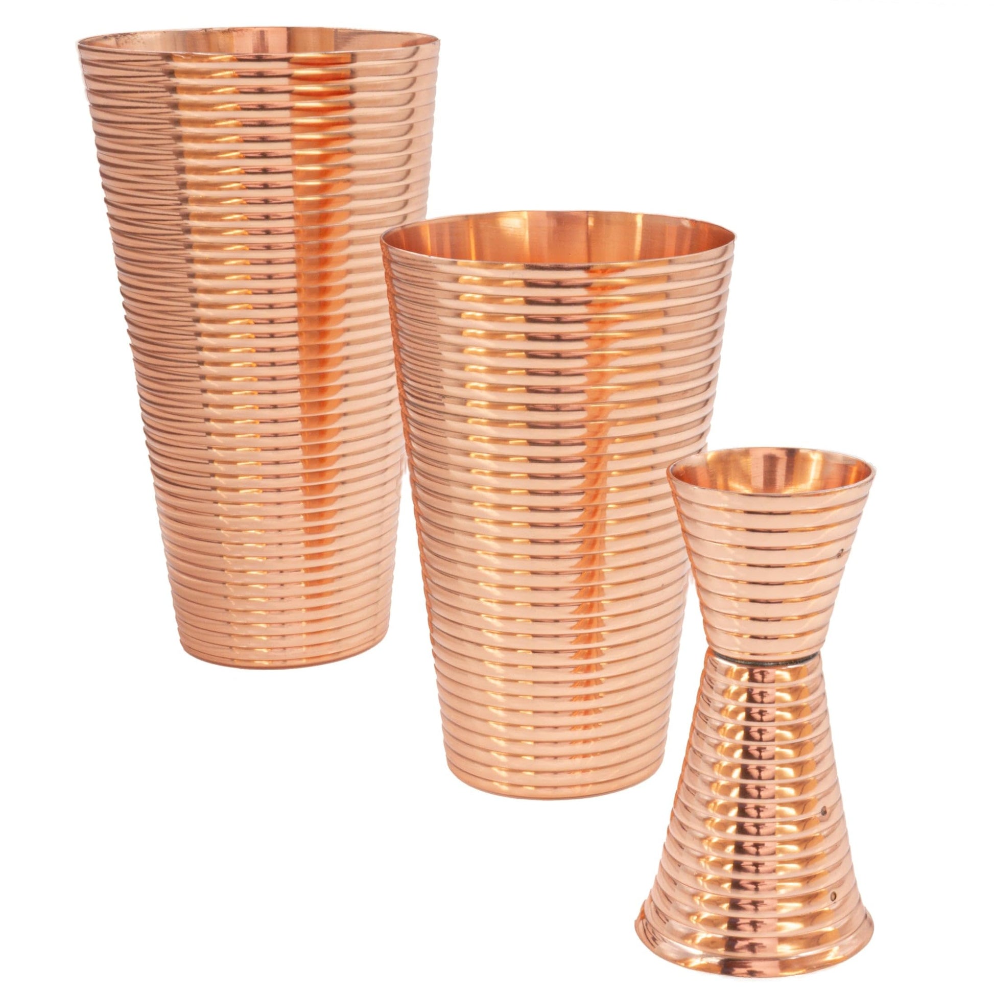 Fluted Copper 3-Piece Cocktail Shaker Set