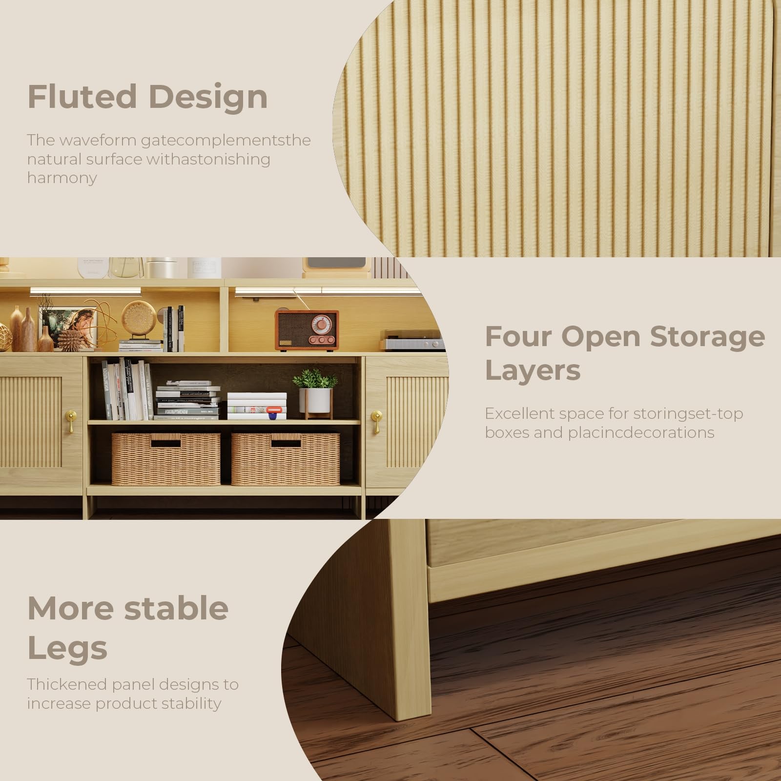 Fluted TV Stand for 70-85 Inch TV with LED Lights & Storage