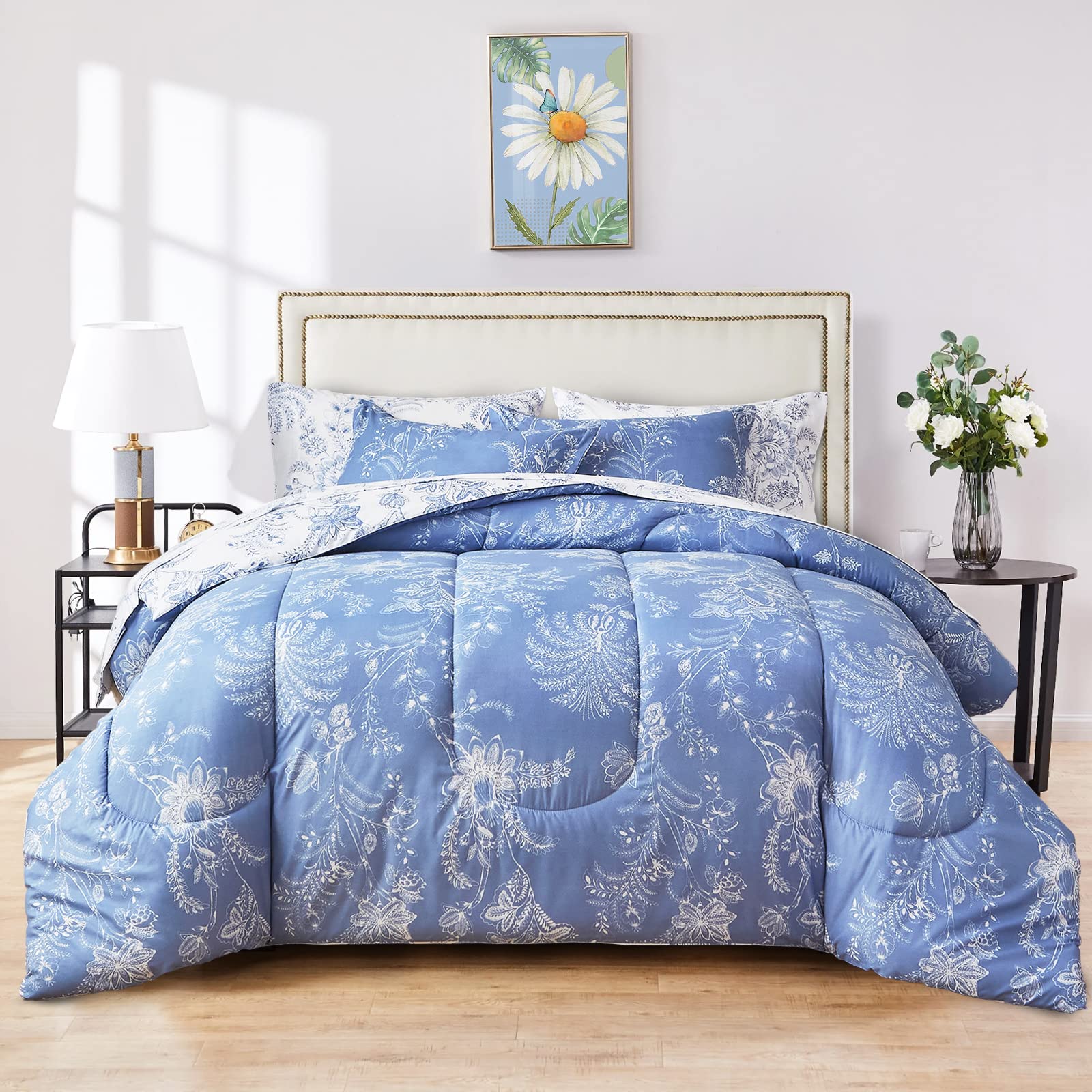- Reversible White botanical printed on blue/ blue botanical printed on white, super soft reviersible comforter set. Beautiful bedding with neat stitches, add more enchanting feeling, refresh your home decor. Perfect gift for men and women, Valentine's Day, Christmas and other festivals.