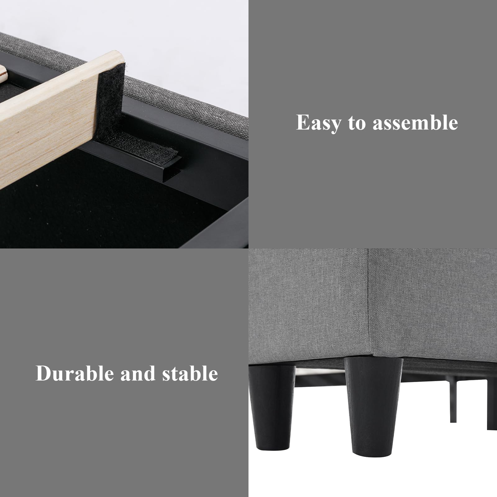 - 【Simple modern design】: This Grey bed frame adopts a popular modern style design, with a simple and atmospheric appearance, suitable for bedroom matching in various scenes. The bed frame provides 12.01 inches of space under the bed, which is very suitable for storing shoes, suitcases, storage boxes, and even allows the sweeping robot to pass easily to keep the bedroom tidy.
