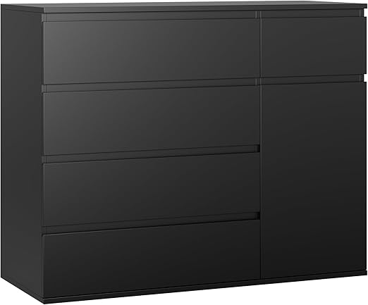 - More storage with Five Drawers & 1 Door: With a large capacity of 5 drawers and a 2-shelves cabinet with door, the FOTOSOK white dresser can meet most of your storage needs. Documents and books, beauty and skin care, daily sundries, etc. can be placed in this exquisite 5 drawer double dresser.