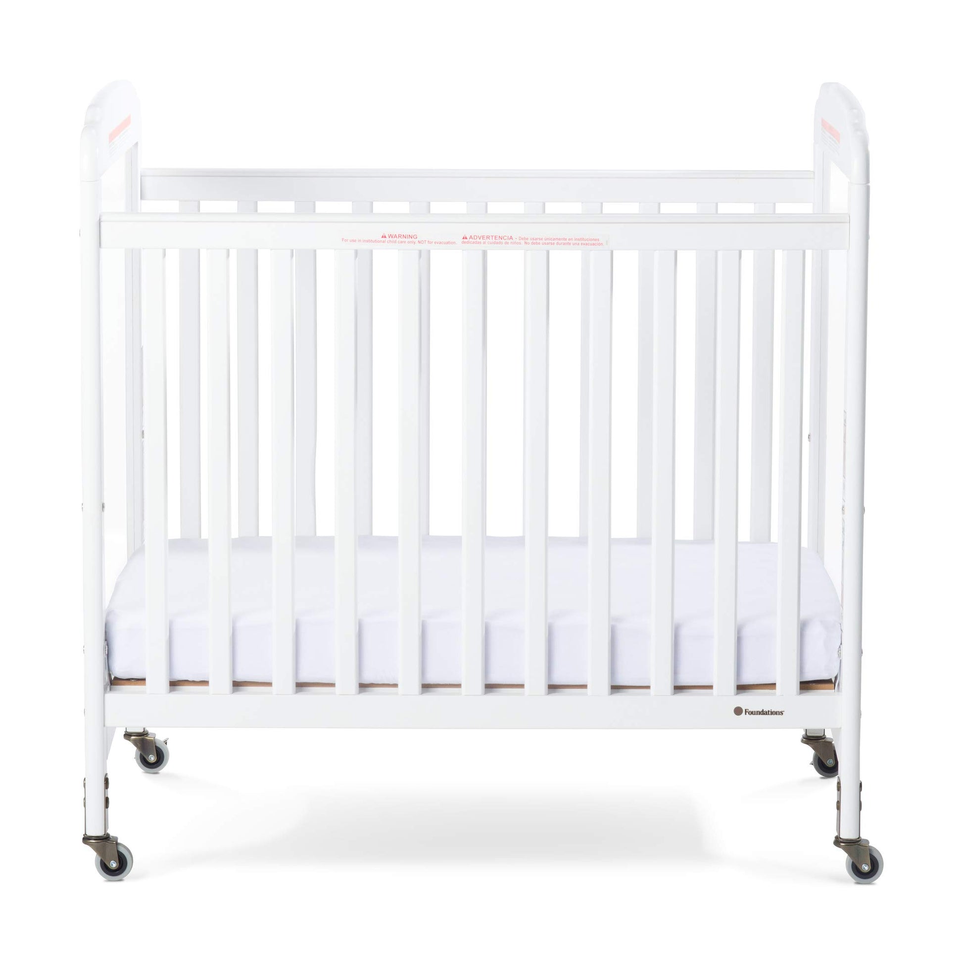 - Compact Wood Crib: Durable, fixed-side compact crib design is perfect for childcare centers. Assembled dimensions: 39.75” L x 26.25” W x 42.1” H, with a weight of 50 pounds.