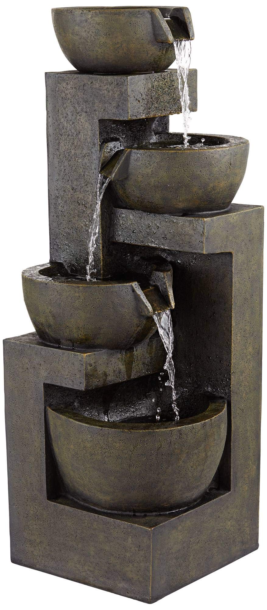 Four Bowl Rustic Outdoor Floor Water Fountain 42" High with LED Light Cascading Decor
