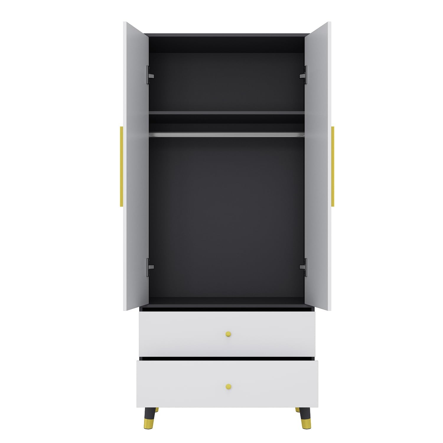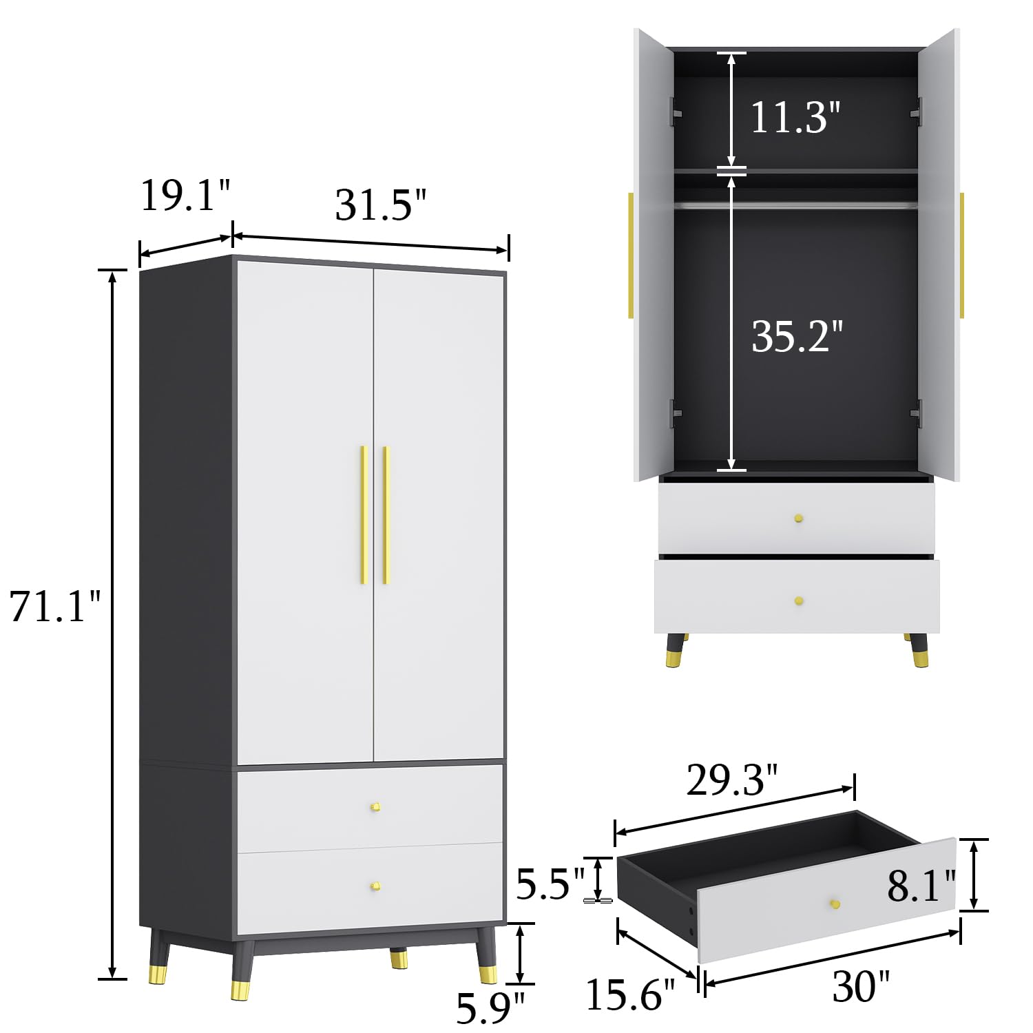 Armoire Wardrobe Closet with Hanging Rod, 2 Door Wardrobe with 2 Drawers