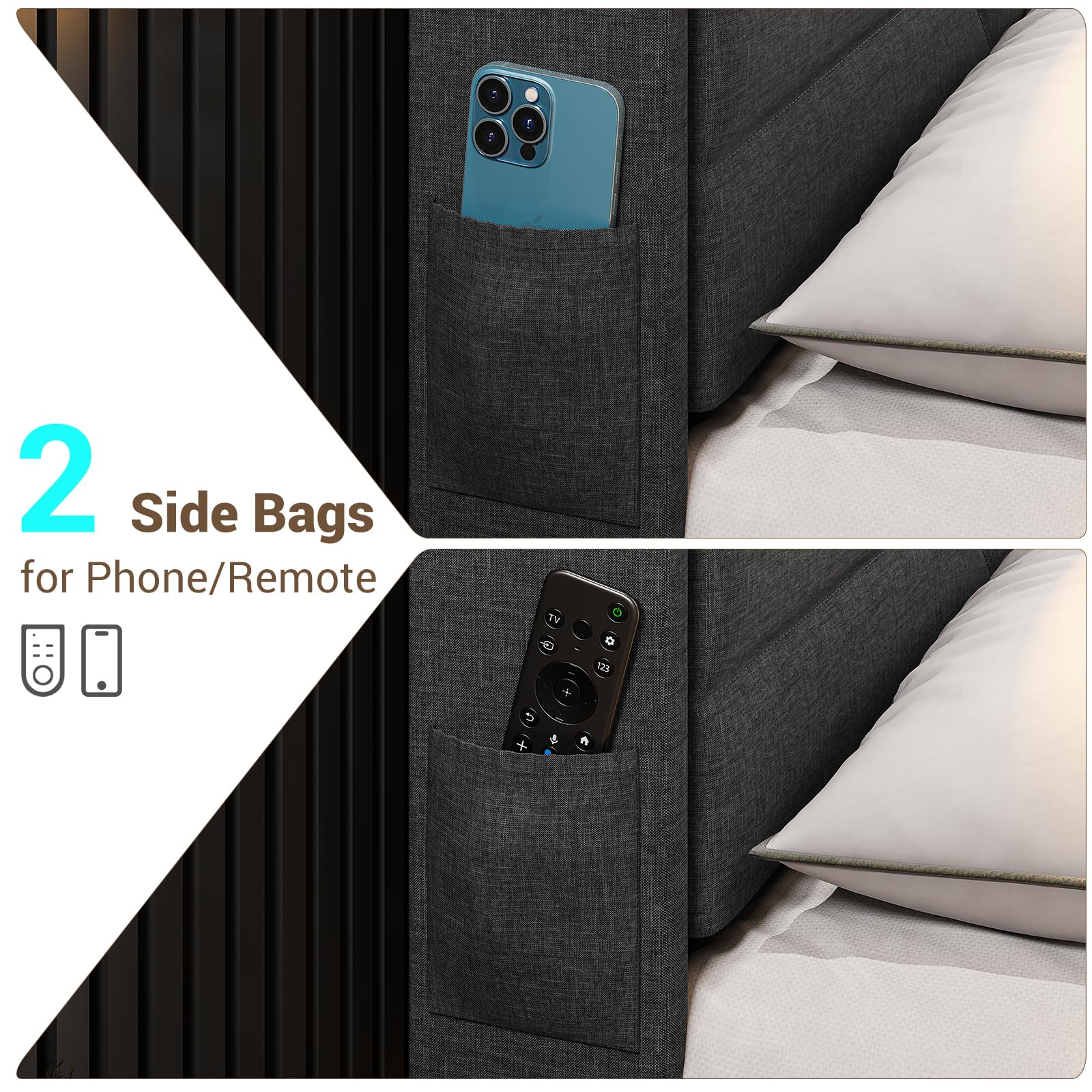 - Premium dark gray linen upholstery for a sophisticated look