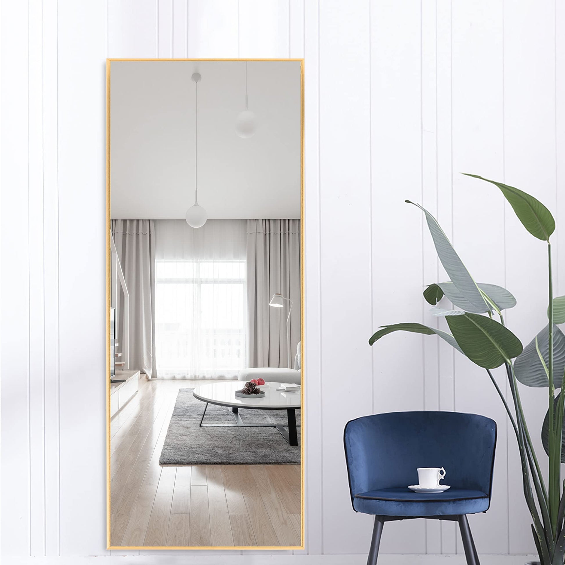 Full Length Mirror with Gold Aluminum Frame - 59" x 16" Wall Mounted or Standing