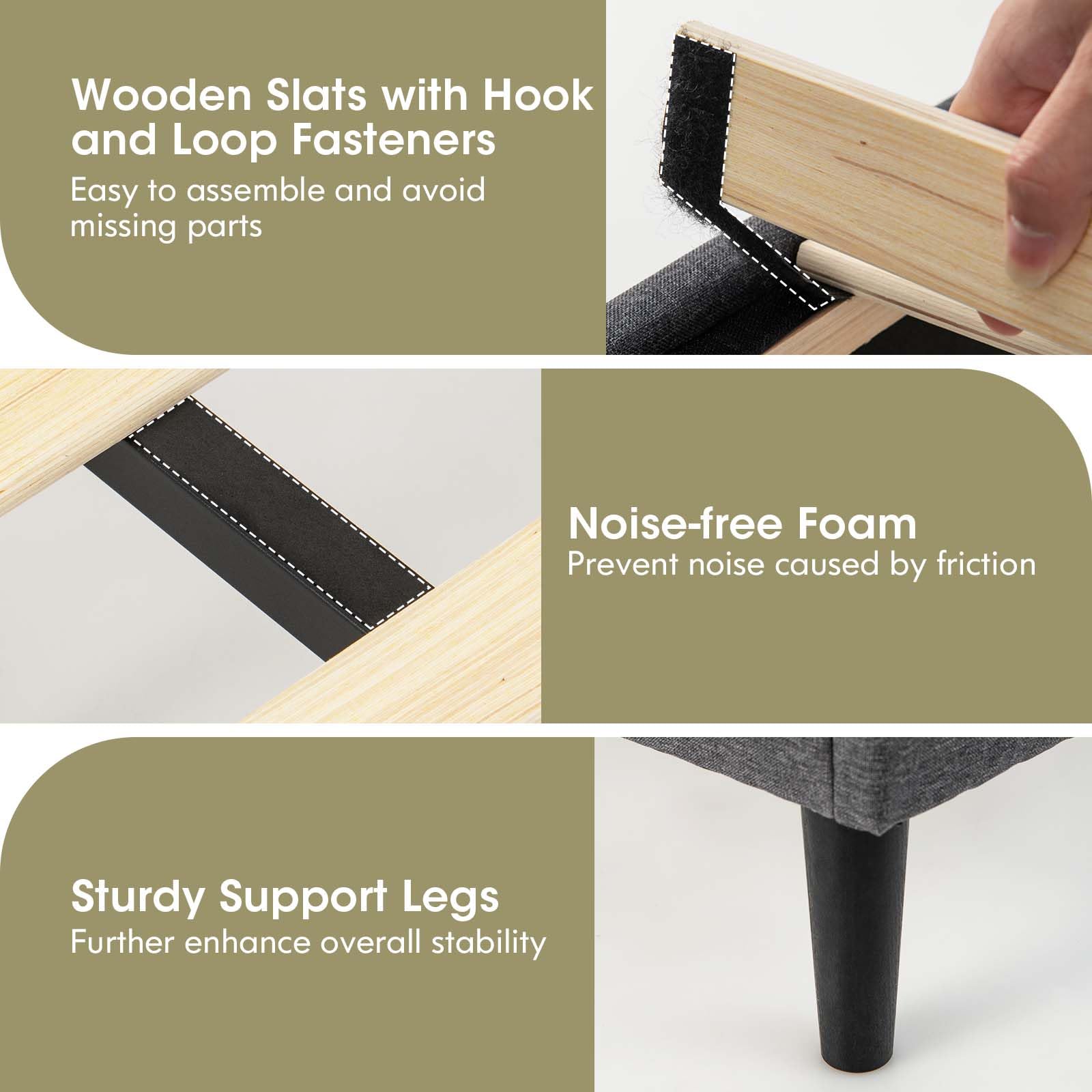 | Material | Linen Fabric, Solid Wood Slats |